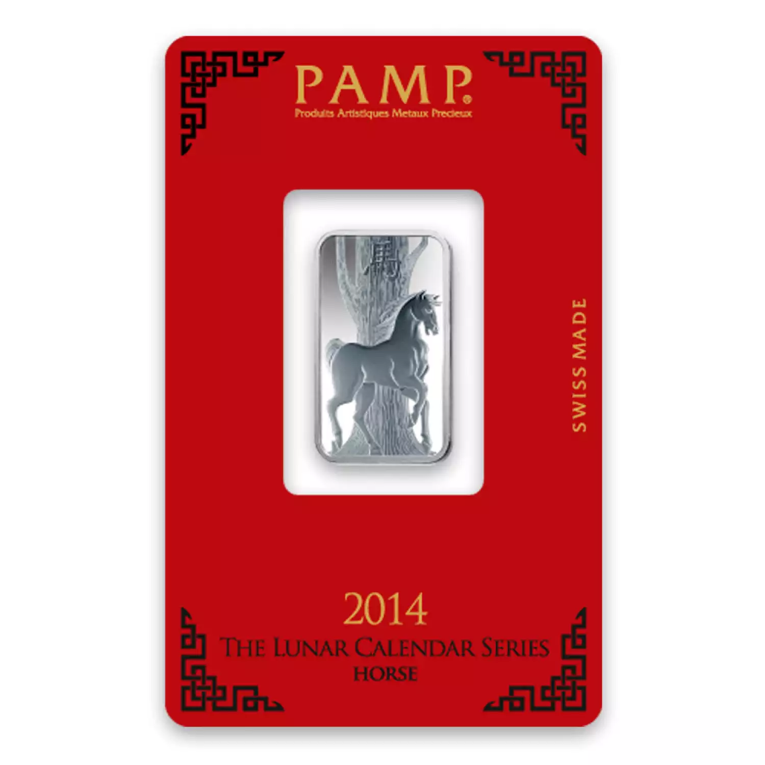 The 10g PAMP Silver Bar - Lunar Horse is manufactured in Switzerland and is composed of 10 grams of .999 pure silver. This beautiful silver bar features a horse design for the Chinese Zodiac series on the obverse.