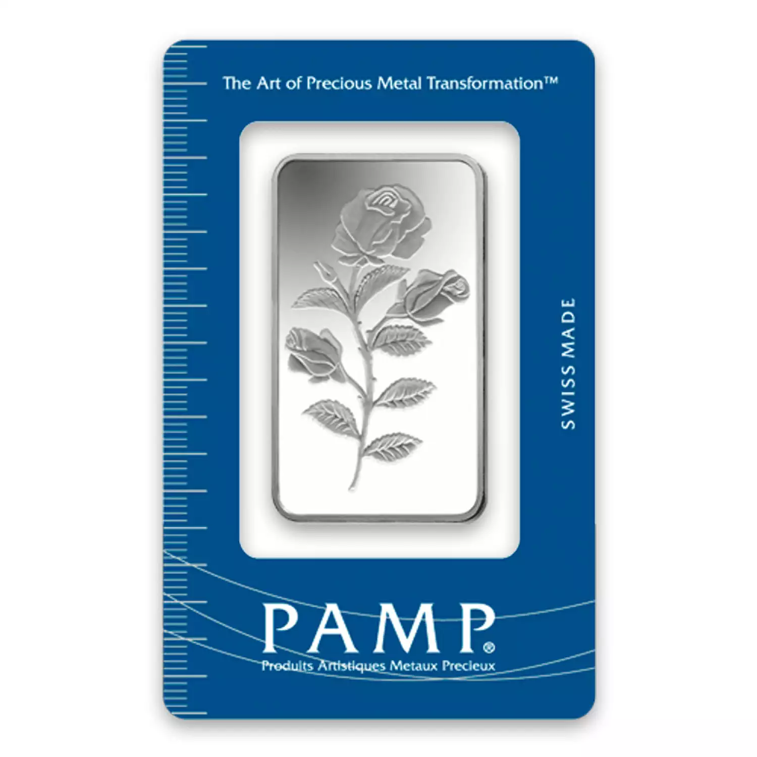 Each 50g PAMP Silver Bar - Rosa is composed of 50 grams of .999 fine silver. The spot price of silver tends to be more volatile than the spot price of gold and is one of the reasons that both silver premiums and spreads tend to be wider for silver coins and silver bars.
