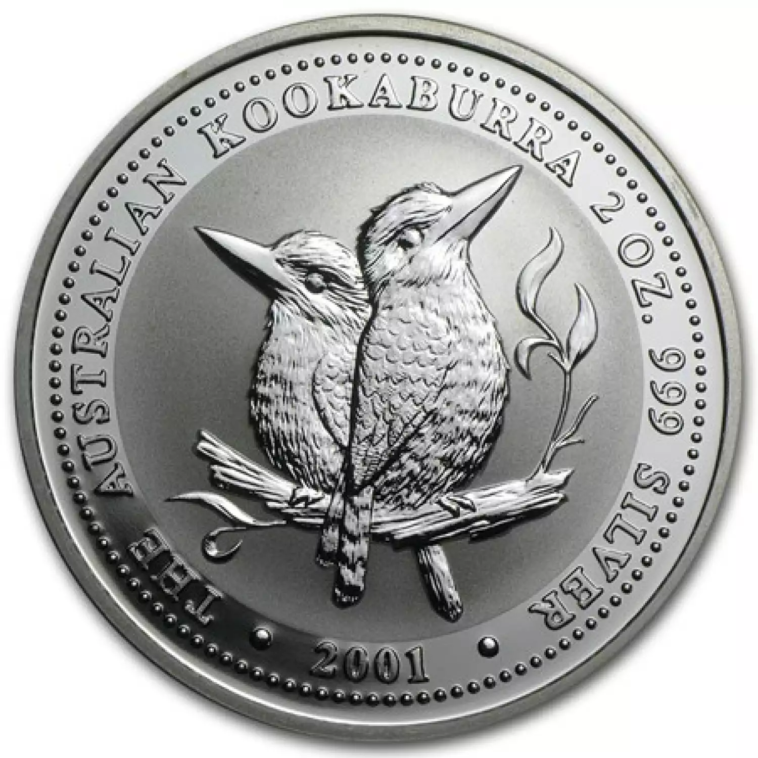 The Silver Kookaburra series is greatly sought after by investors and collectors. This series features a kookaburra, a native bird to Australia. Each 2001 2 oz Australian Perth Mint Silver Kookaburra is composed of 2 troy ounces of 0.999 fine silver.