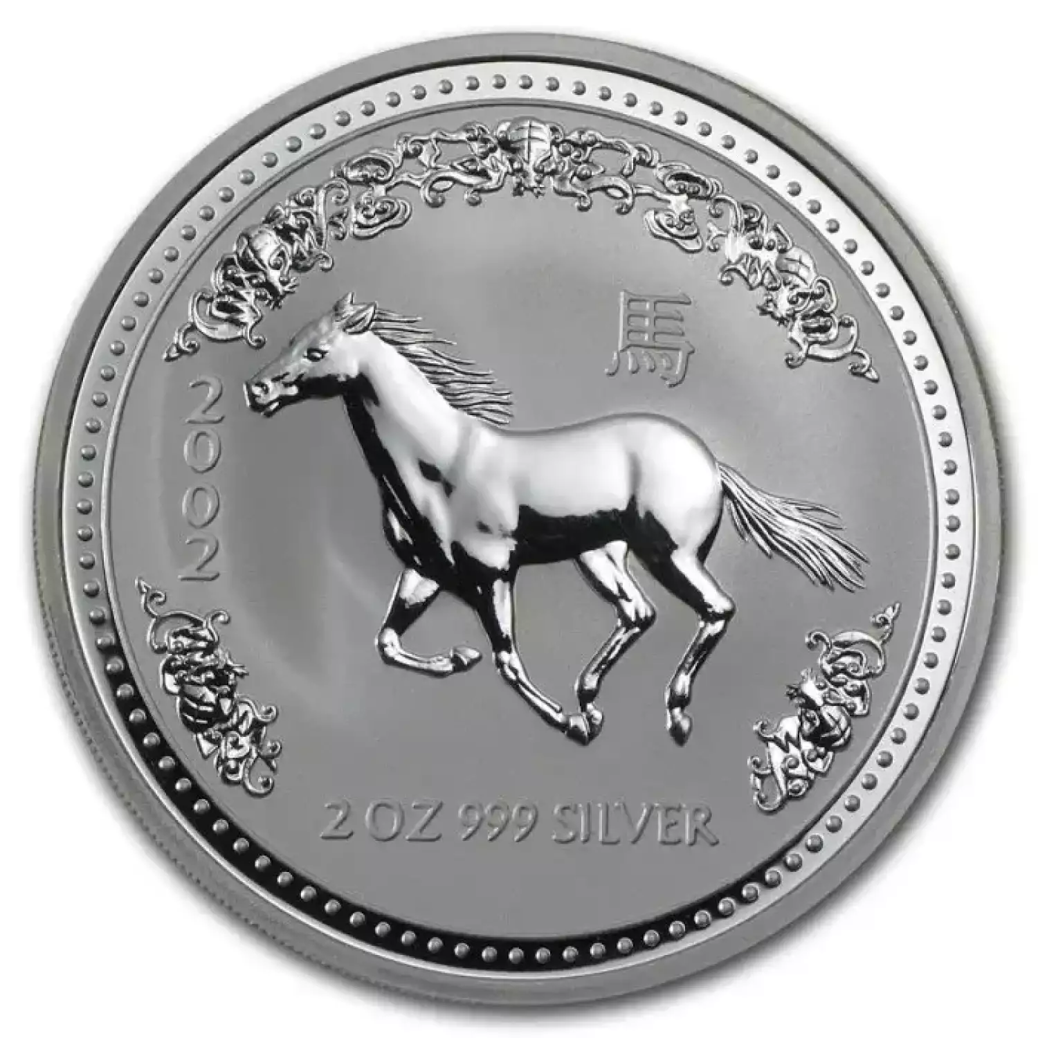 The 2002 2oz Australian Perth Mint Silver Lunar: Year of the Horse was struck by the Perth Mint in the Year 2002 and has a limited mintage of coins.