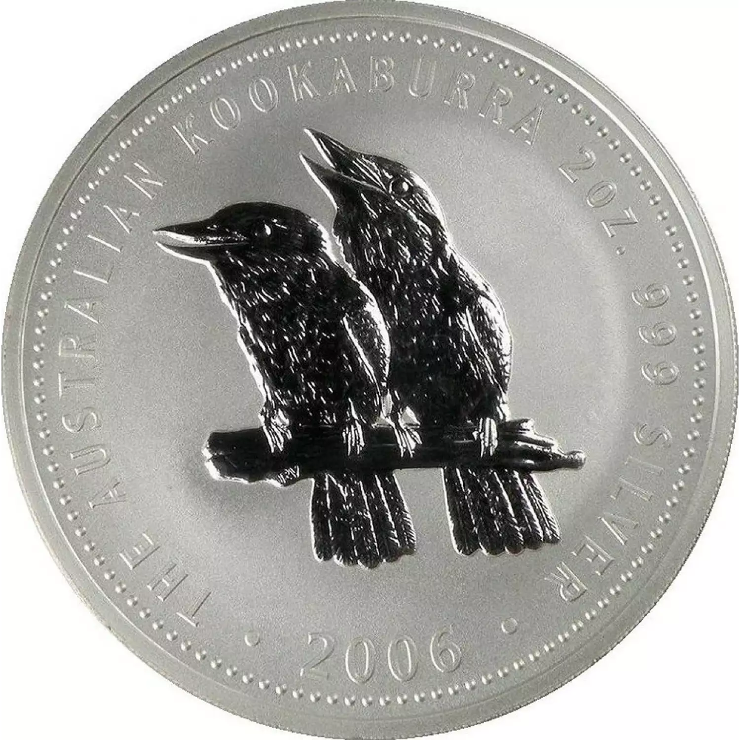 Each 2006 2 oz Australian Perth Mint Silver Kookaburra contains 2 troy ounces of 0.999 fine silver and has a mintage of 12,802 coins.