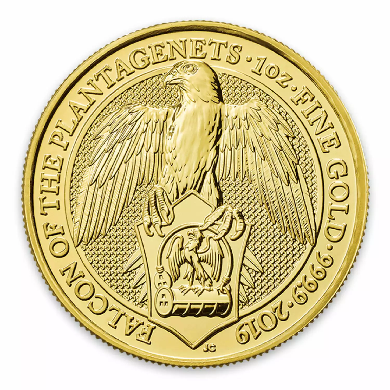 The 2019 1oz Britain Queen's Beast: The Falcon of the Plantagenets is the first release in an exciting new 10 coin series. The Britain Queen's Beasts celebrate the British Monarch and the centuries of fascinating heraldry. This strikingly beautiful gold coin contains 1 oz of .9999 fine gold.This one ounce gold bullion coin is the sixth addition to The Queen’s Beasts bullion range. Inspired by ancient symbols of power and identity, the range brings to life the ten imposing statues that lined the entrance to Westminster Abbey in 1953 at the coronation of Her Majesty The Queen.