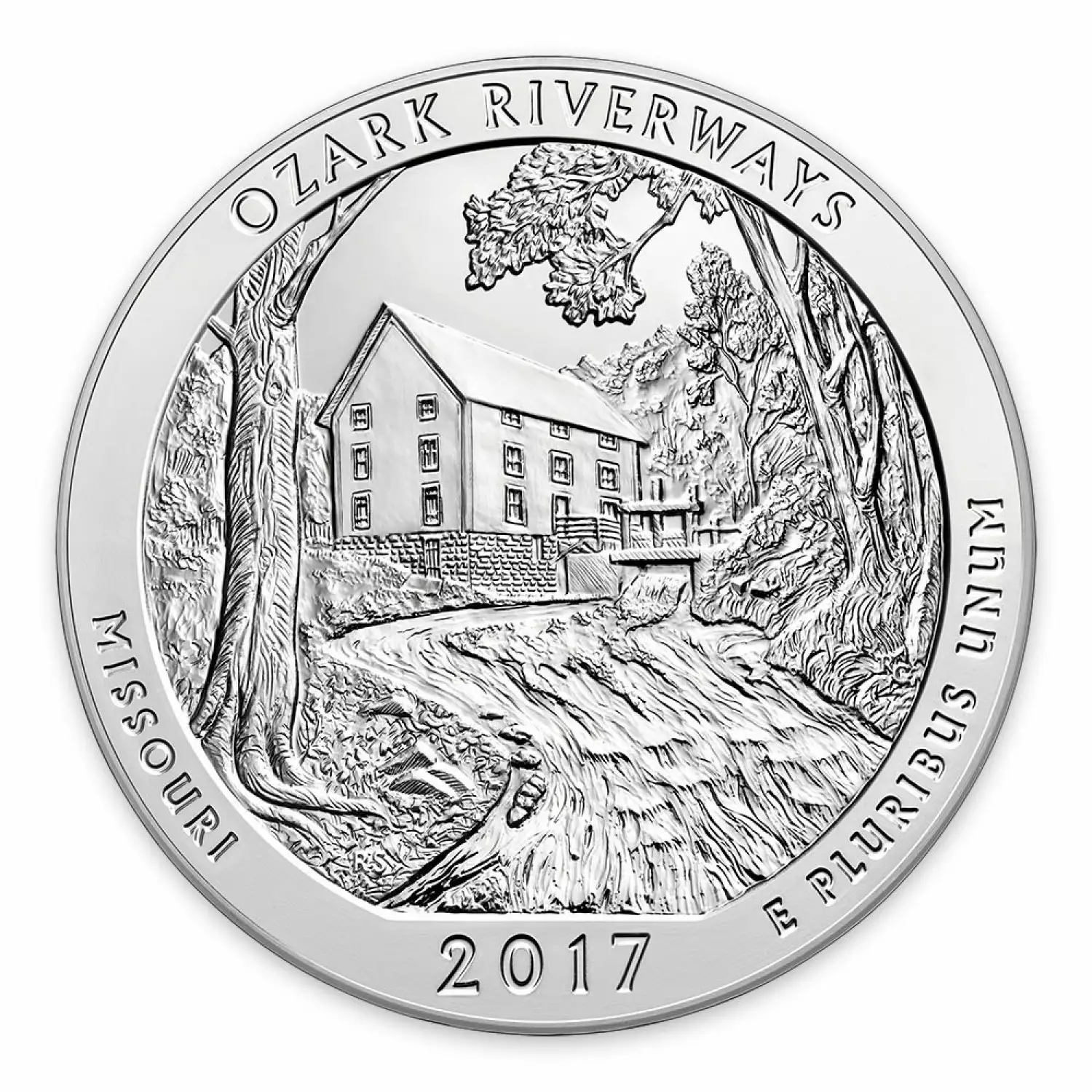 Since 2010, the US Mint released five silver America the Beautiful coins annually. The 5oz silver coins will be complete in 2021, each representing a historical monument or a treasured national park. These bullion coins were introduced following the success of the state quarter program.The Ozark National Scenic Riverways is a national park in the Ozarks of southern Missouri in the U.S.