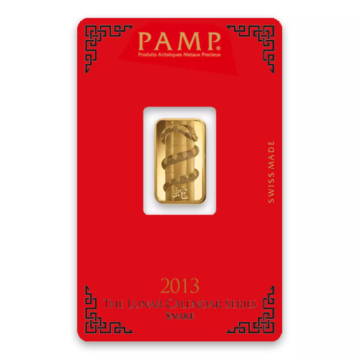 PAMP is the world-renowned producer of precious metals bars. The 5g PAMP Gold Bar - Lunar Snake is manufactured in Switzerland and is composed of 5 grams of .9999 pure gold.