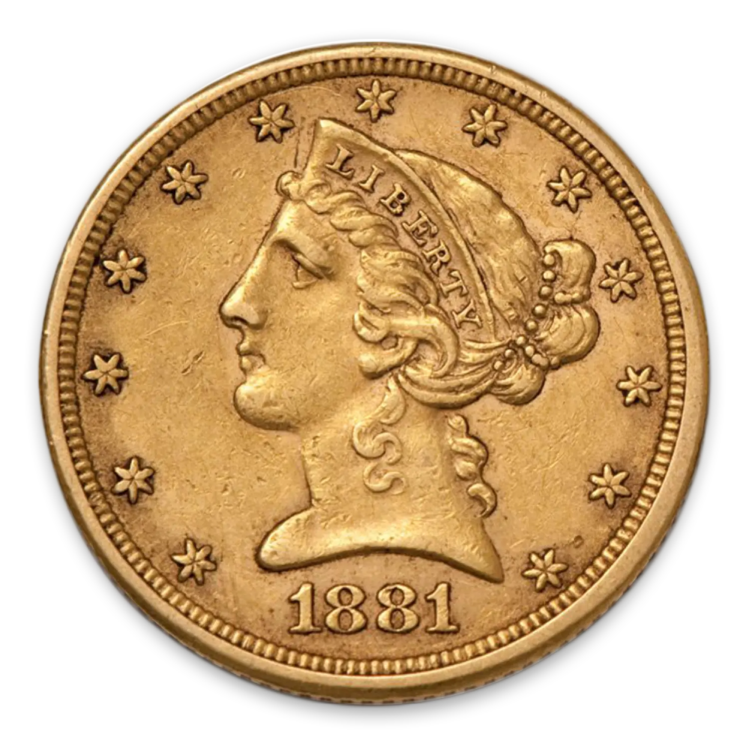 THE COIN YOU RECEIVE IS OUR CHOICE. IT WILL BE A COIN ESTIMATED TO BE OF THE GRADE / QUALITY INDICATED. THE IMAGE SHOWN IS AN EXAMPLE ONLY. Liberty Head $5 (1839 – 1908) - XF