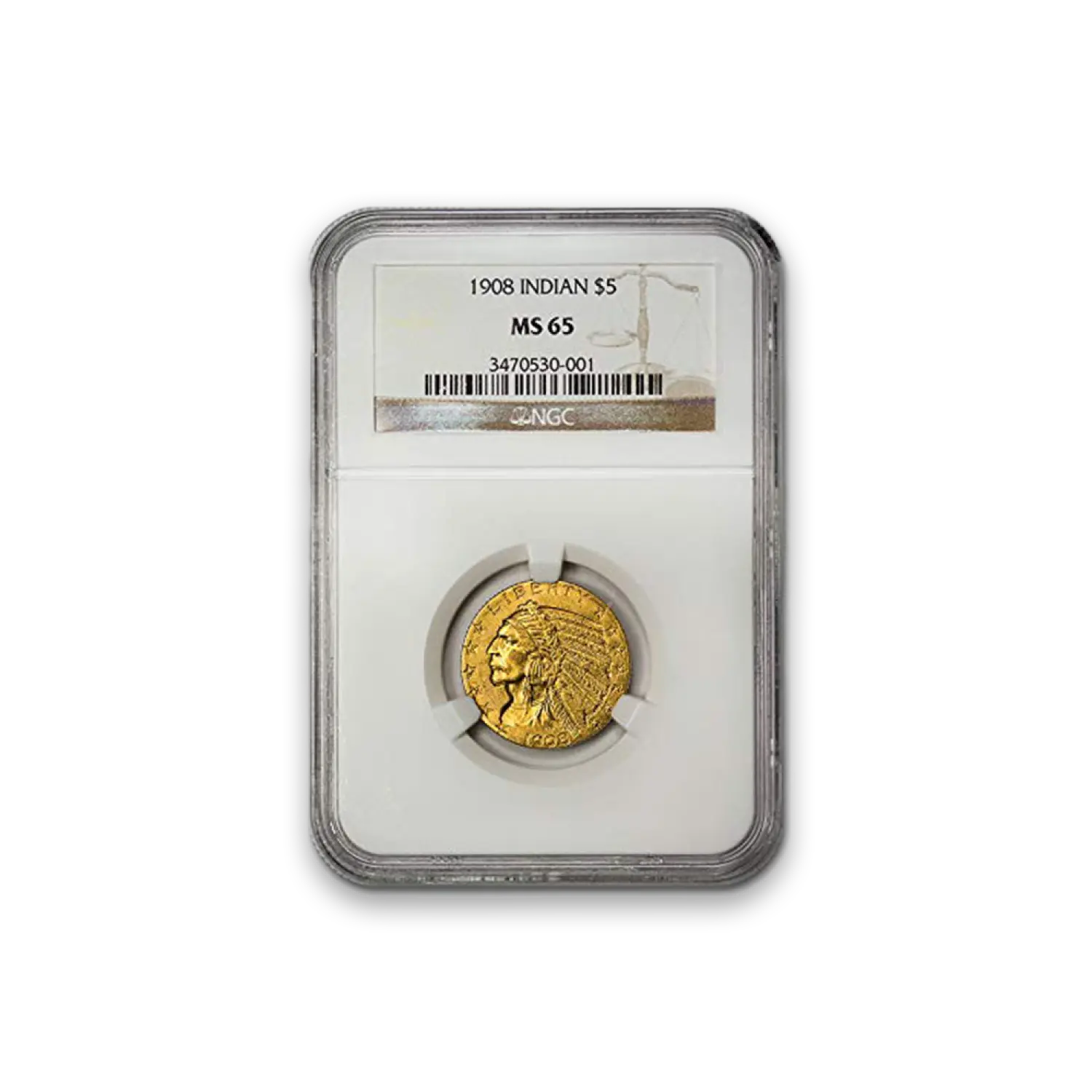 THE COIN YOU RECEIVE IS OUR CHOICE. IT WILL BE A COIN ESTIMATED TO BE OF THE GRADE / QUALITY INDICATED. THE IMAGE SHOWN IS AN EXAMPLE ONLY. Indian $5 (1908 - 1929) - MS65