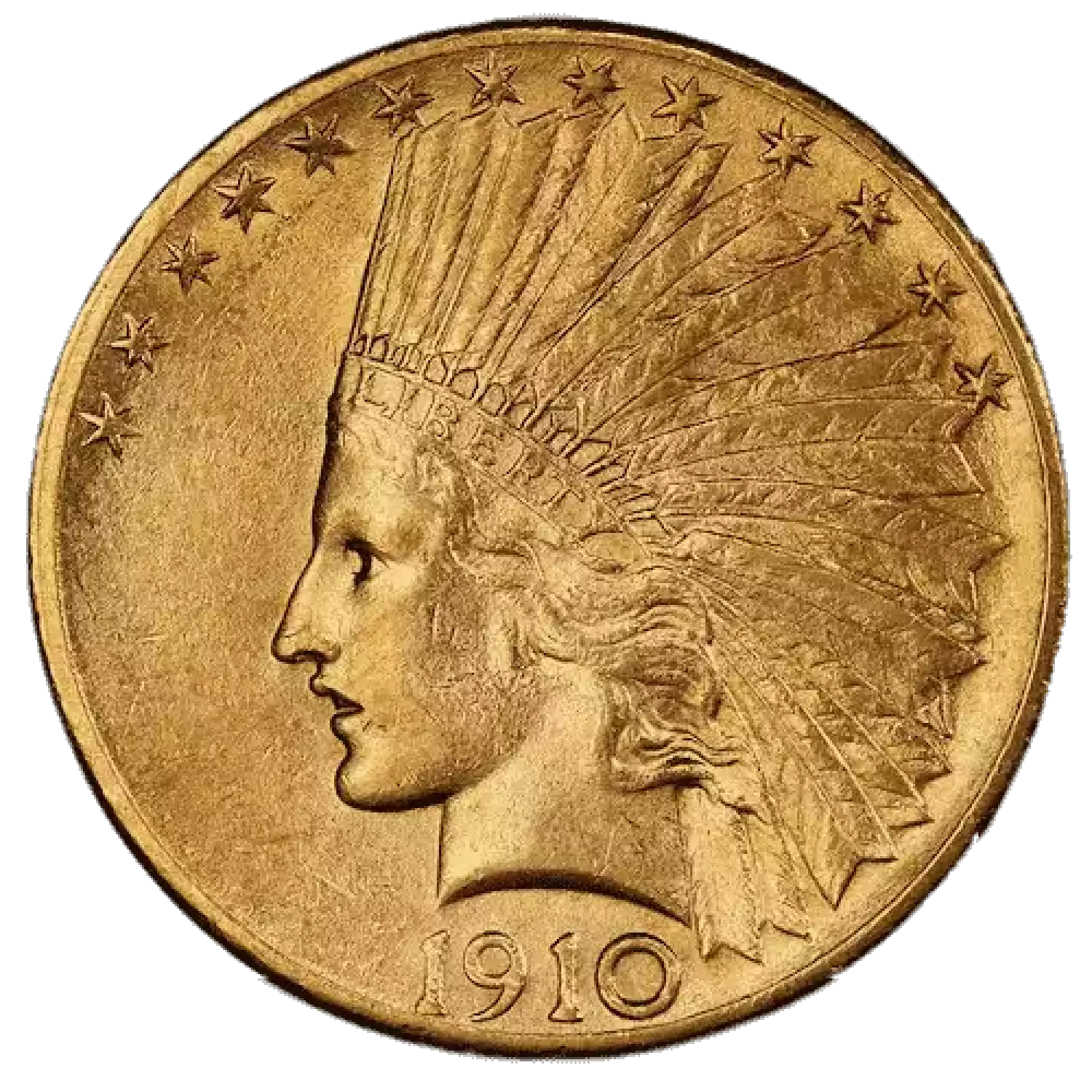 THE COIN YOU RECEIVE IS OUR CHOICE. IT WILL BE A COIN ESTIMATED TO BE OF THE GRADE / QUALITY INDICATED. THE IMAGE SHOWN IS AN EXAMPLE ONLY. Indian $10 (1907 - 1933) - AU