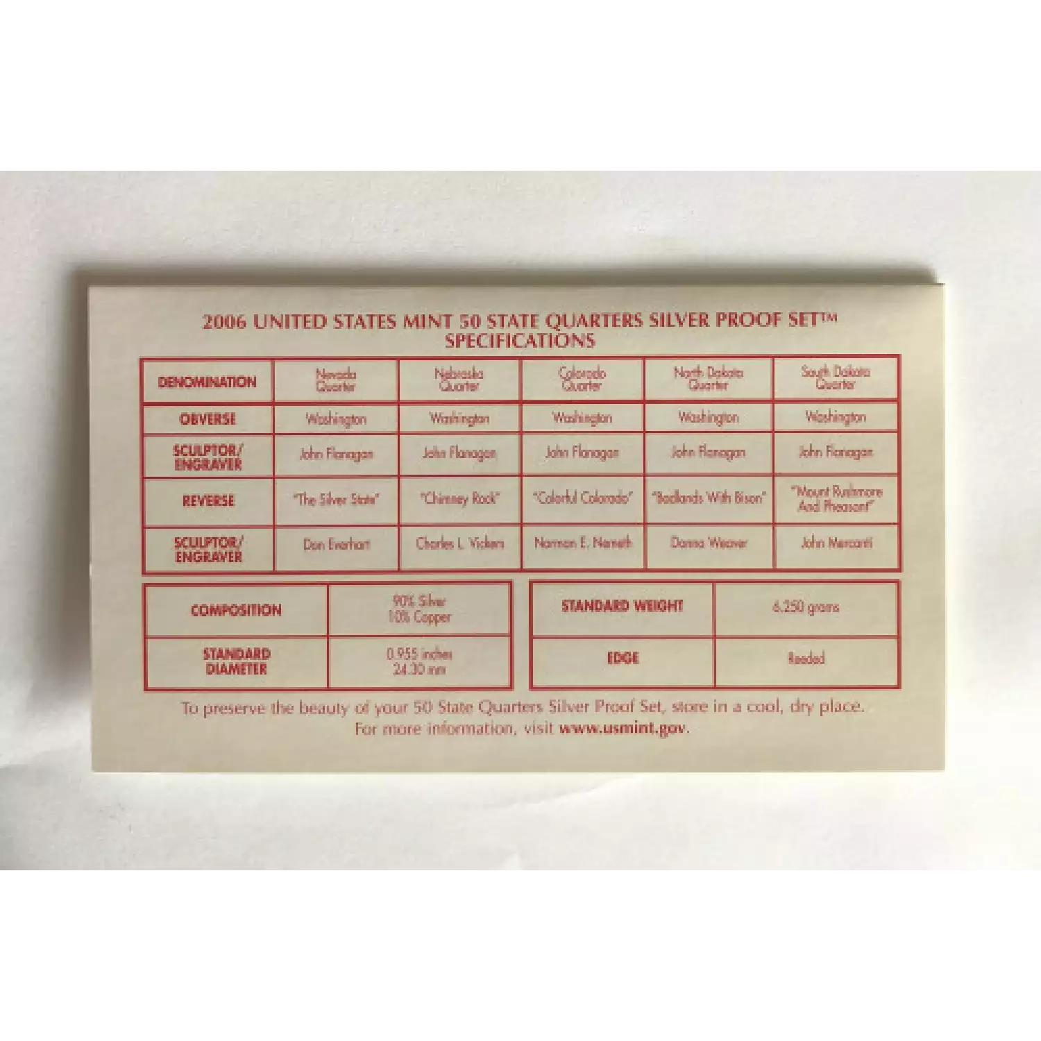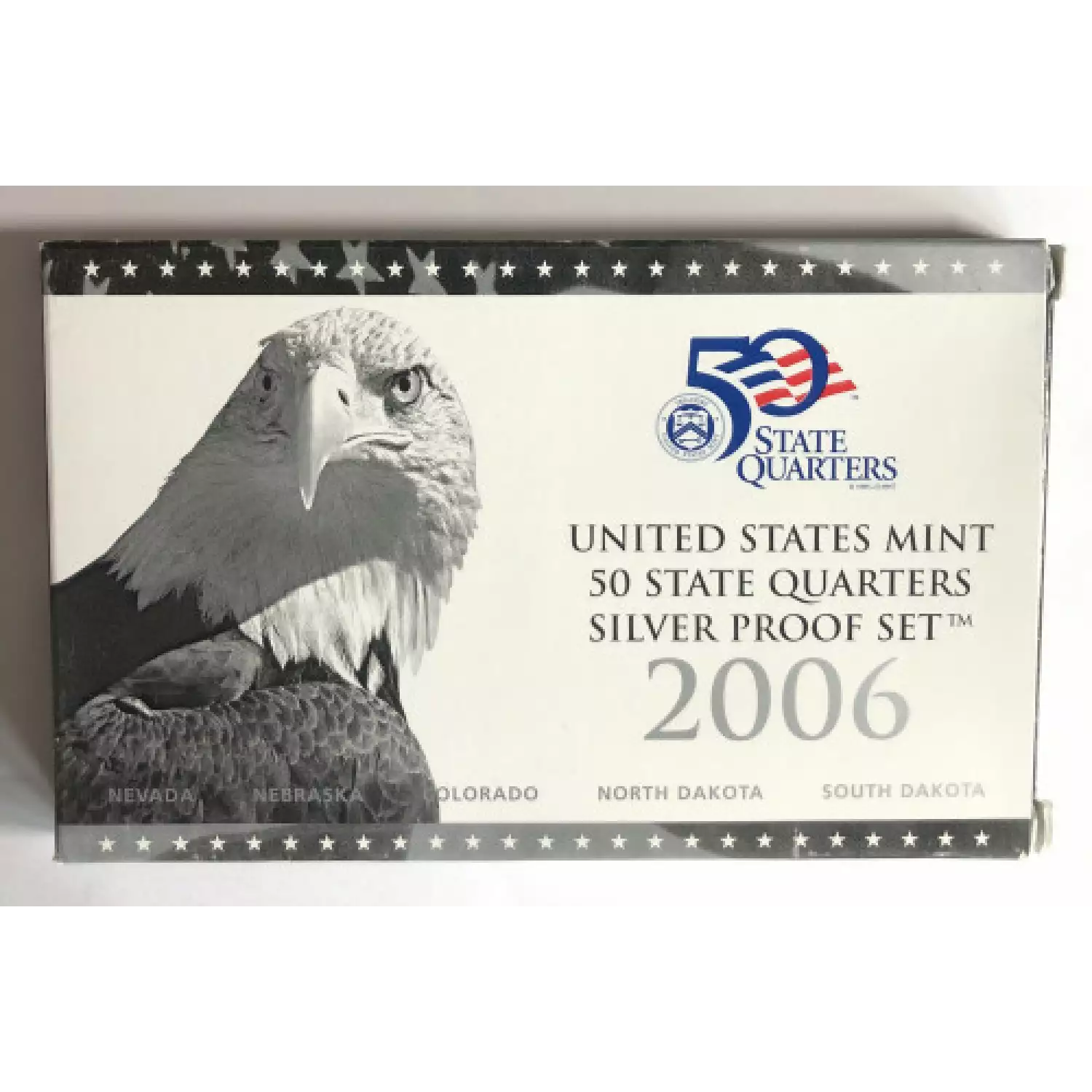 THE SET YOU RECEIVE IS OUR CHOICE. IT WILL BE A SET ESTIMATED TO BE OF THE GRADE / QUALITY INDICATED. THE IMAGE SHOWN IS AN EXAMPLE ONLY. Mint Proof Set - 2006S 5 Piece Quarter Silver ($1.25 FV) - Set