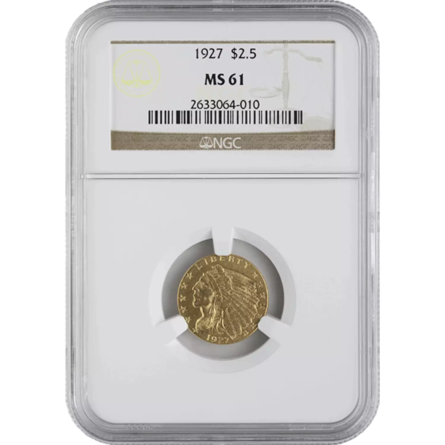 THE COIN YOU RECEIVE IS OUR CHOICE. IT WILL BE A COIN ESTIMATED TO BE OF THE GRADE / QUALITY INDICATED. THE IMAGE SHOWN IS AN EXAMPLE ONLY. Indian $2.5 (1908 - 1929) - MS61