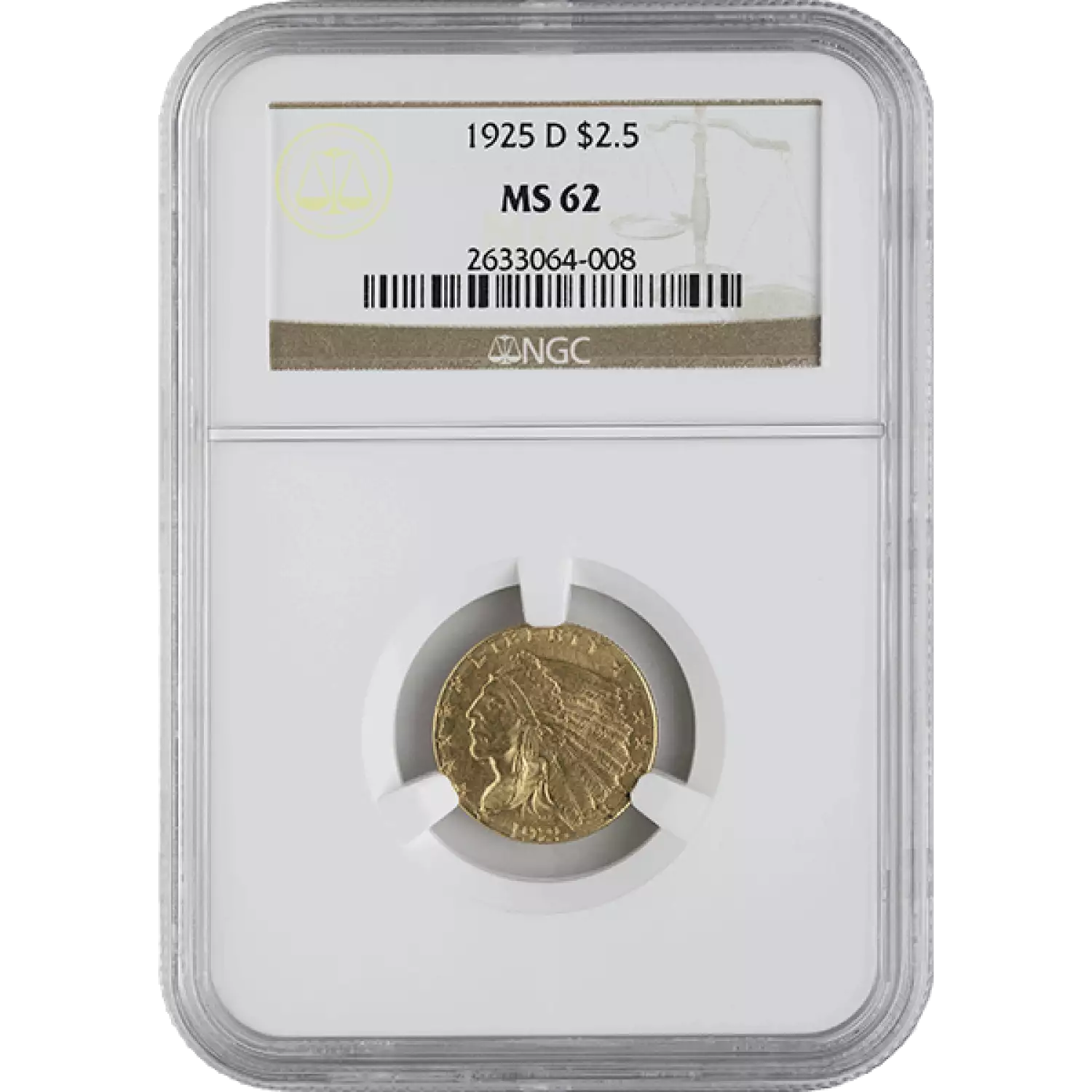 $2.5 Dollars Indian - NGC MS62