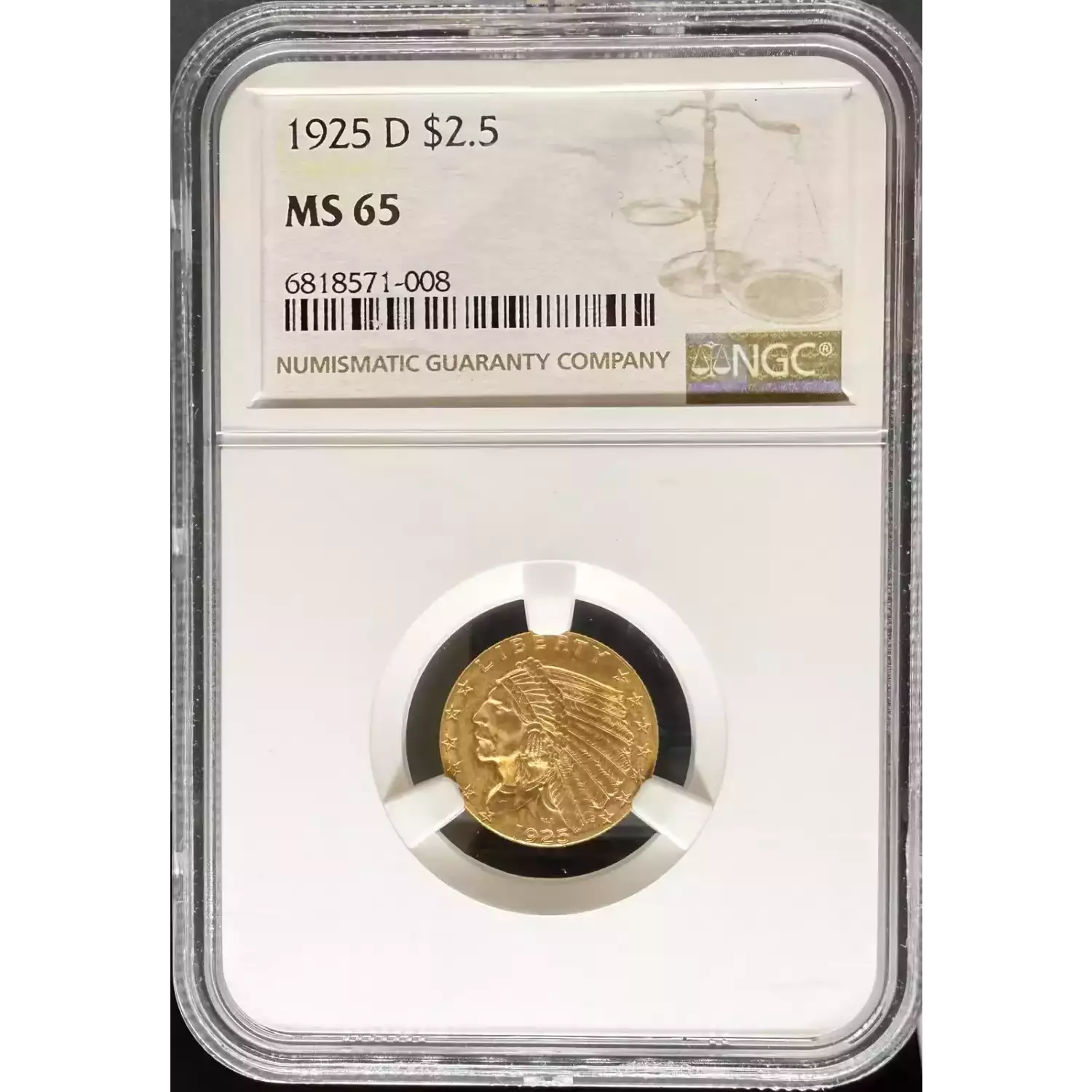 $2.5 Dollars Indian - NGC MS65