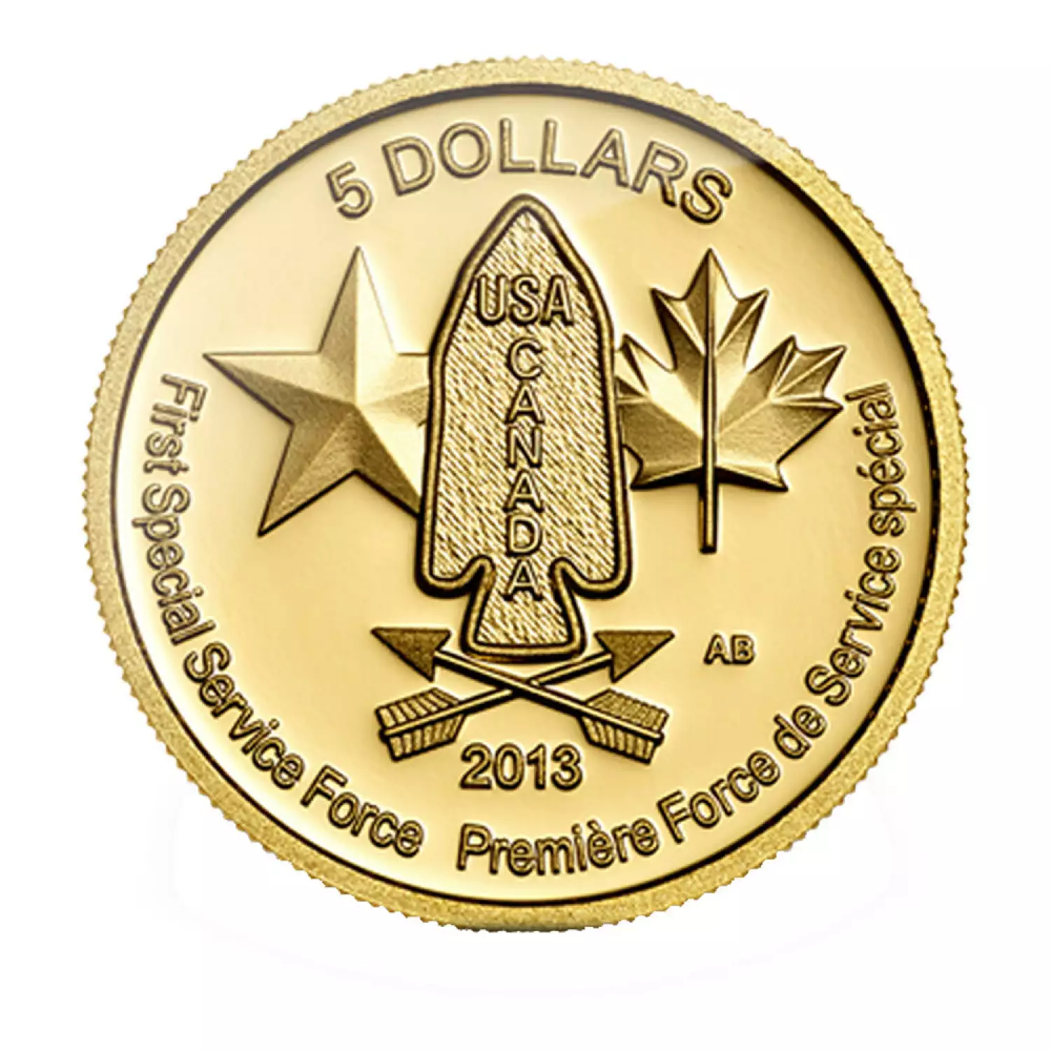 The 2013 1/10 oz Canadian Devil's Brigade Gold Coin coin contains 1/10 oz of .9999 fine Gold. These coins are a tribute for the “Devil’s Brigade,” also known as 1st Special Service Force which was an American-Canadian comando unit which fearlessly fought during World War II.