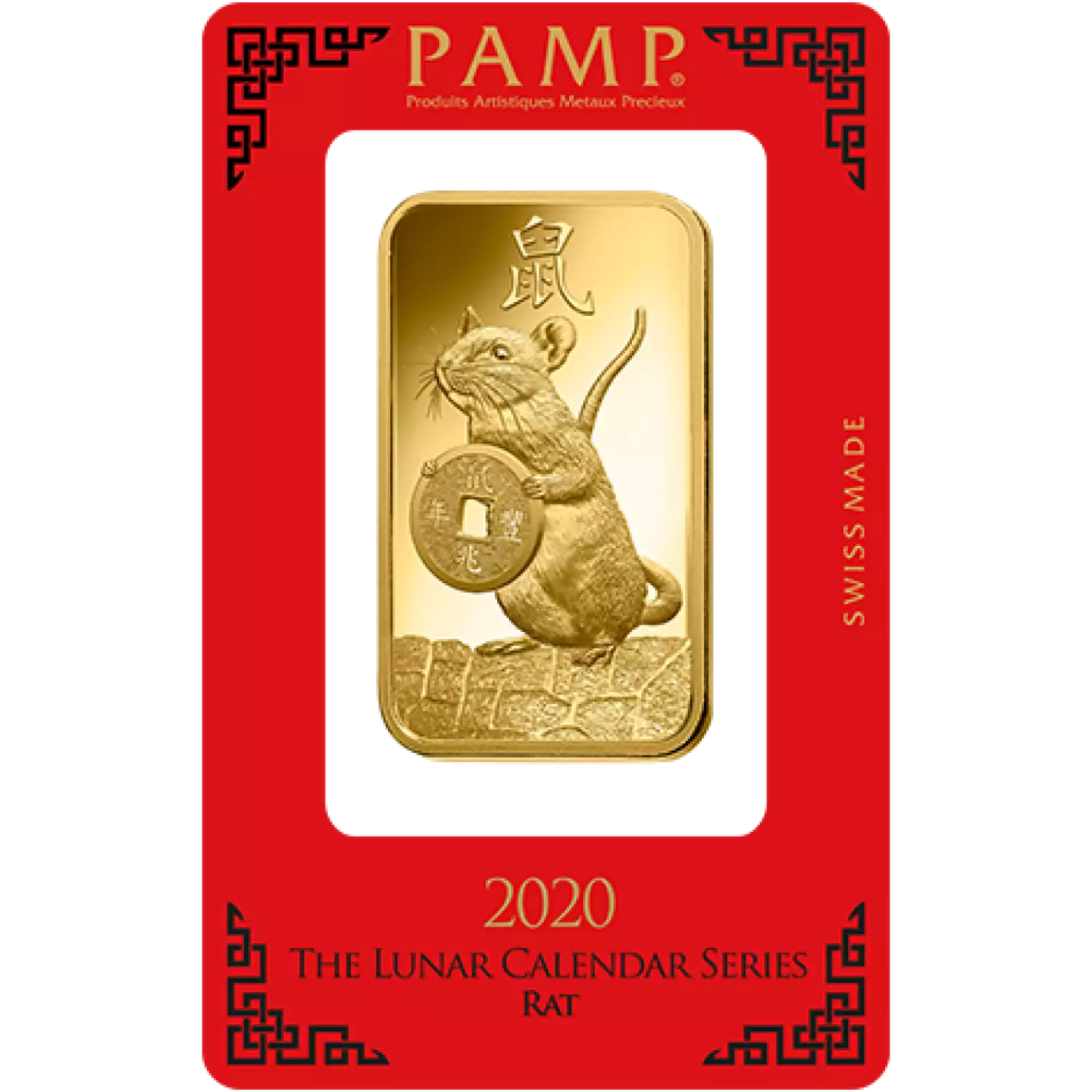 PAMP Suisse makes some of the most interesting and eye catching gold bars in the world. The art they create is impeccable and captivating. The 100g Lunar Year of the Rat gold bar is no different. This gold bar is made from 9999 fine gold and is packaged in the traditional red lunar packaging produced by PAMP Suisse.