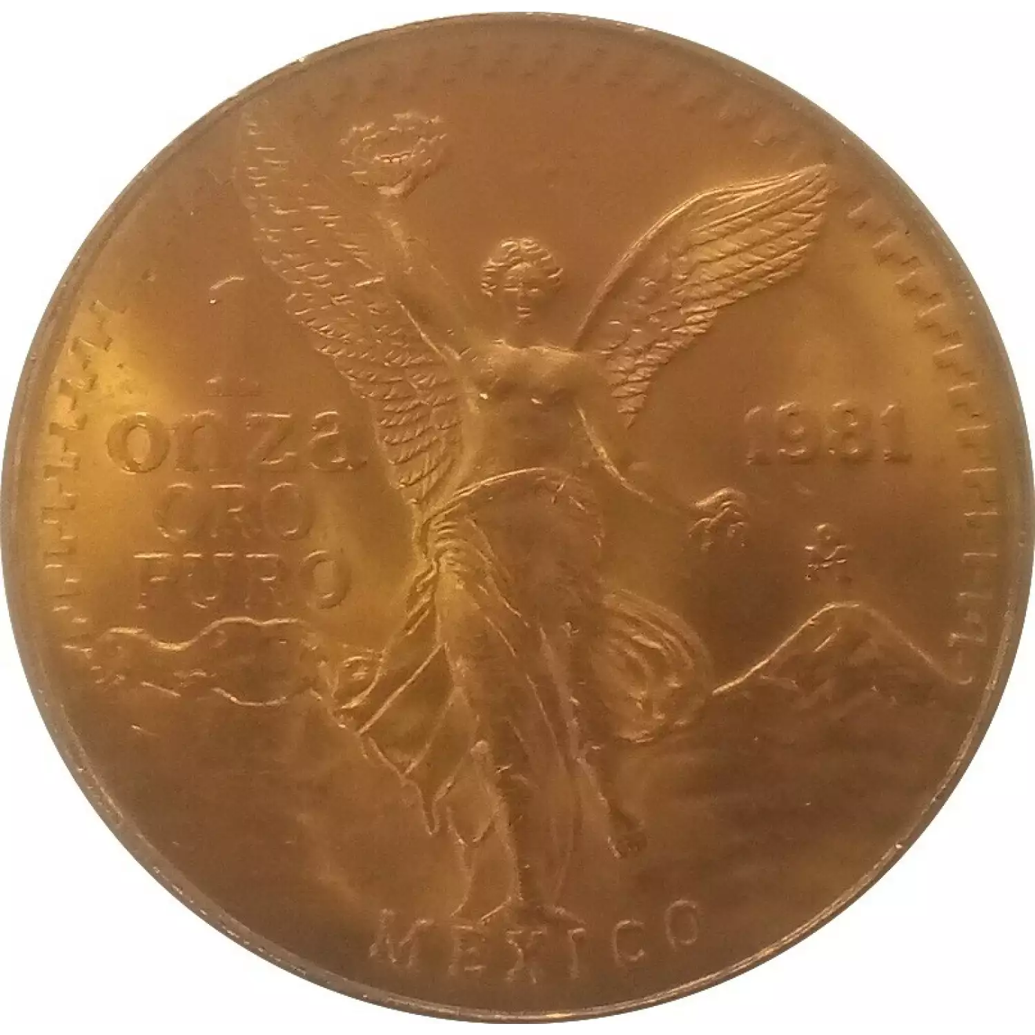 Reverse: Depicts two key symbols of the Mexican people: Winged Victory in the forefront and the Mexican volcanoes Popocatépetl and Iztaccíhuatl in the background.