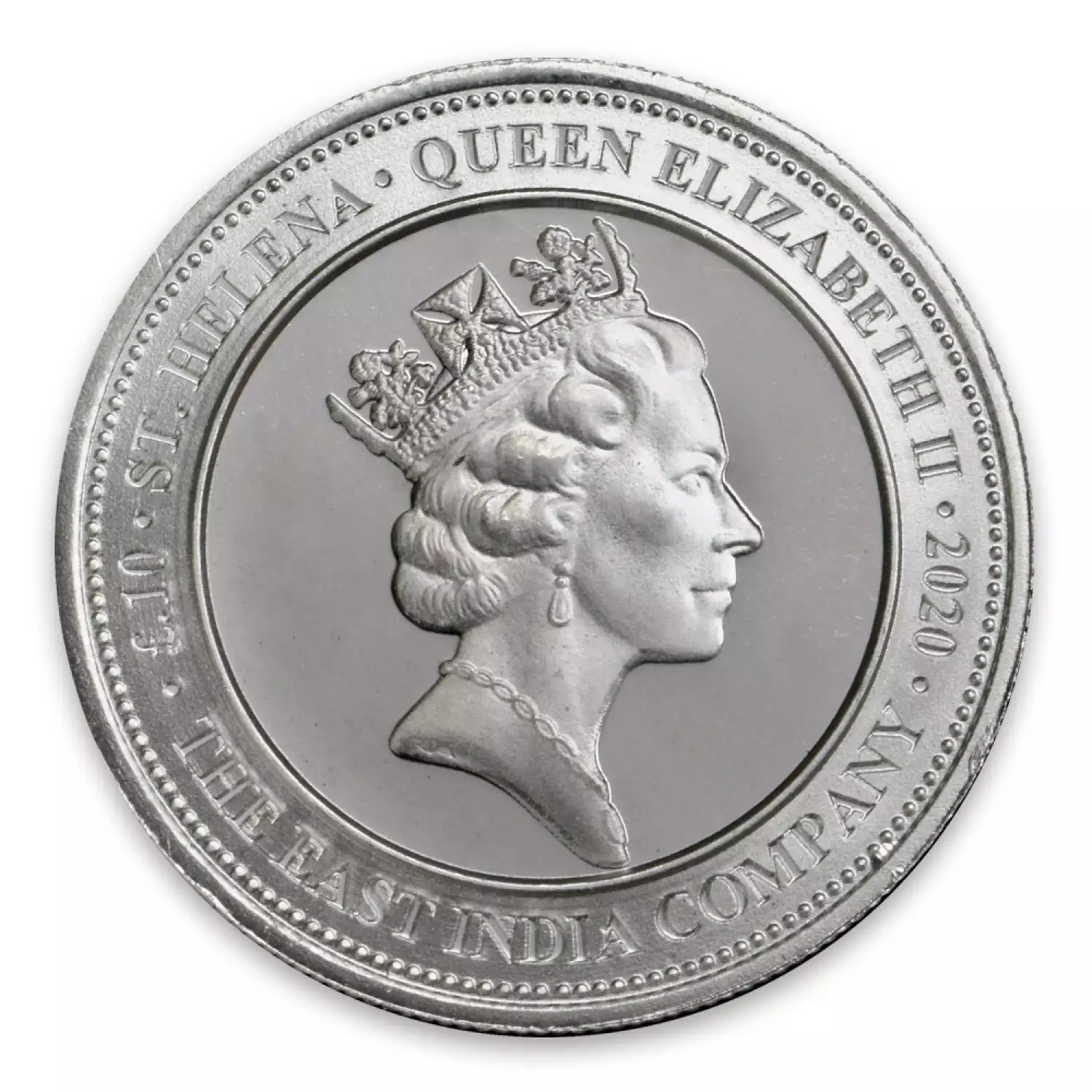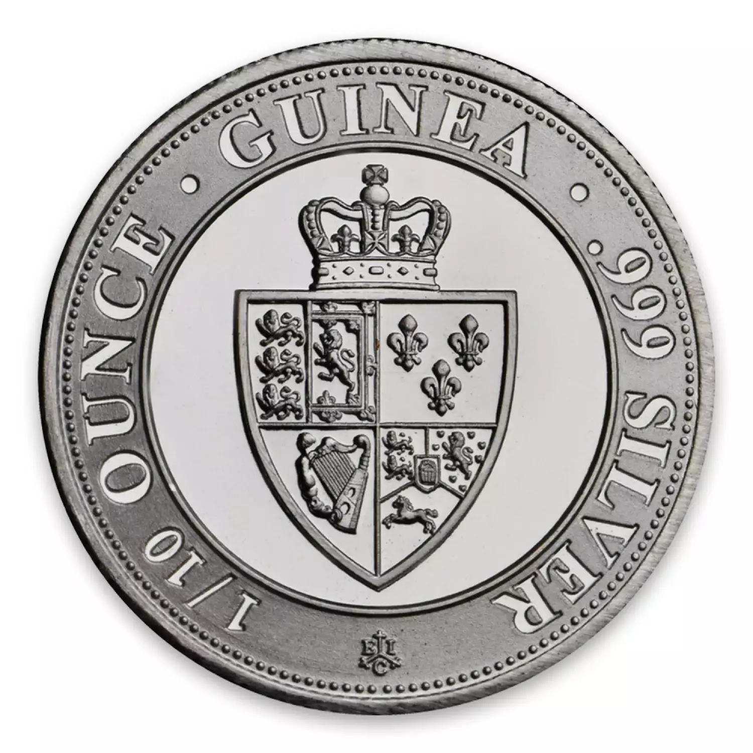 The 2020 1/10oz Saint Helena Spade Guinea Silver coin is a popular silver bullion, first minted in 2018. These coins have been struck in 1/10 troy ounces with a face value of GBP 1 and of .999 fine silver. The impressive design and excellent beauty of these iconic silver coins make them appeal to investors and collectors. The obverse is a depiction of Queen Elizabeth II while the reverse is represented by the Spade Guinea shield.