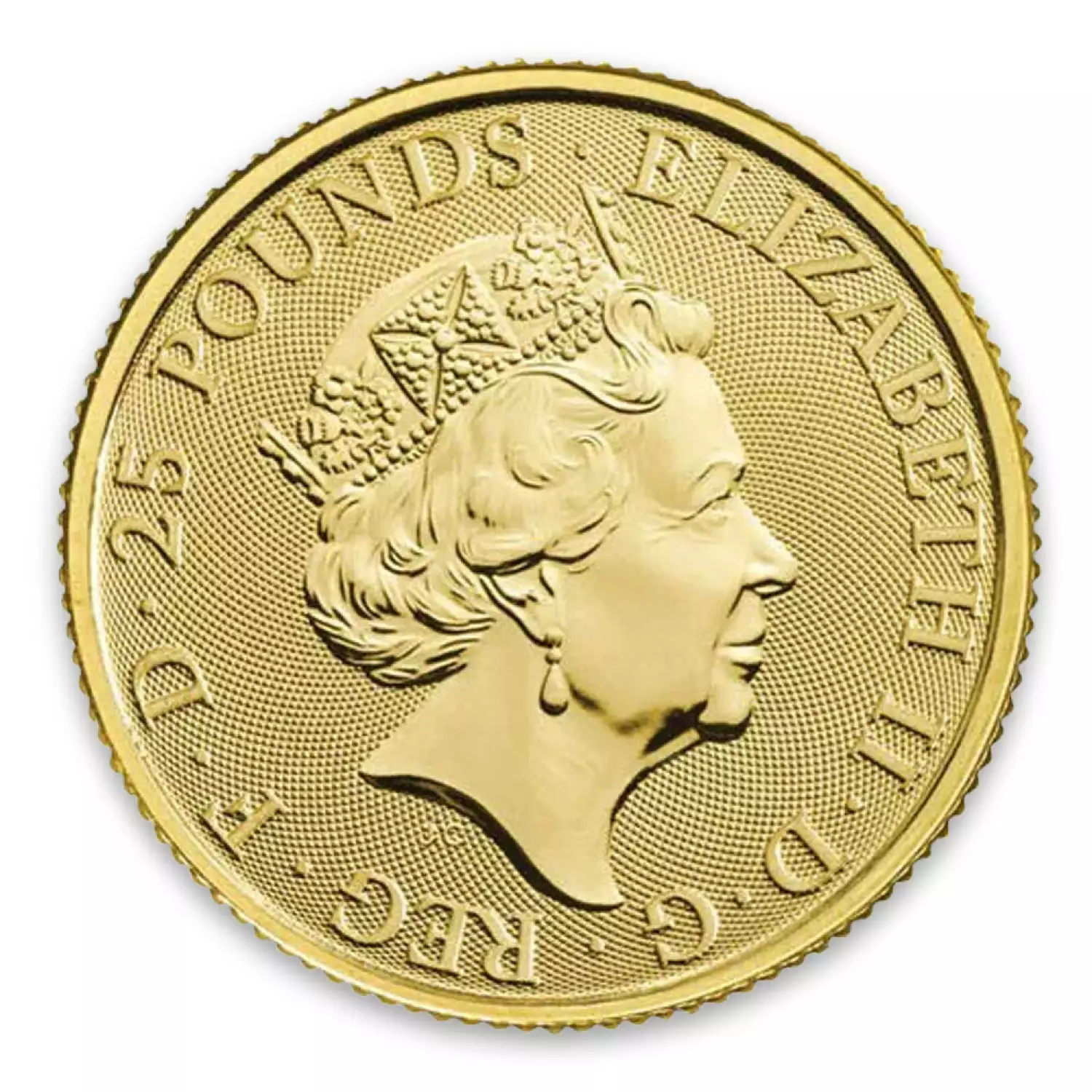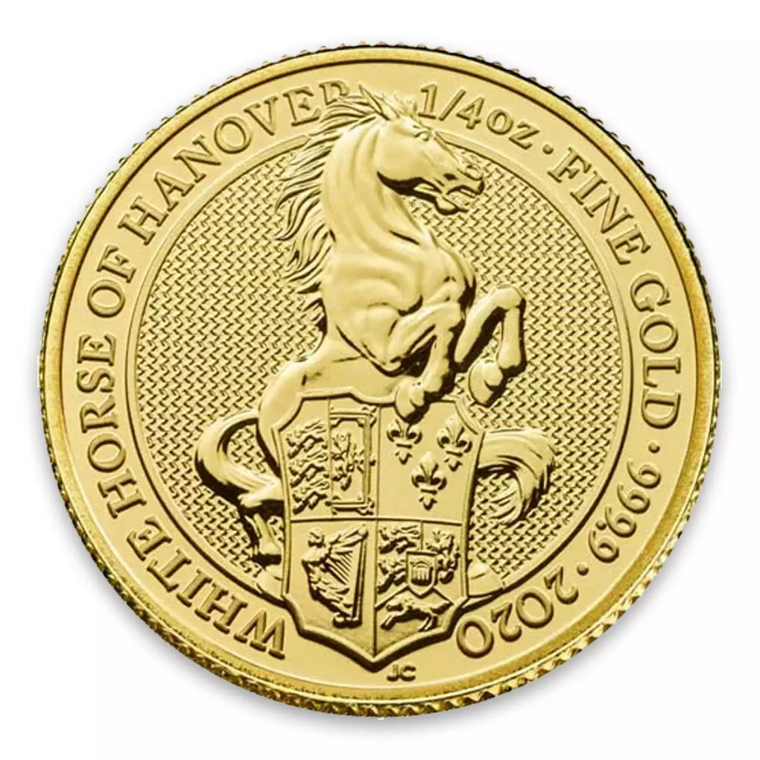 The 1/4oz 2020 Britain Queen's Beasts: The Horse of Hanover is the first release in an exciting new 10 coin series. The 2020 1/4oz Gold Britain Queen's Beast: The White Horse has a limited mintage and it's the eighth coin from this collection. The coin is designed by Jody Clark and while the observe depicts her Majesty, Queen Elizabeth II, the reverse is facing the White Horse of Hanover with the Royal Arms in front of it.