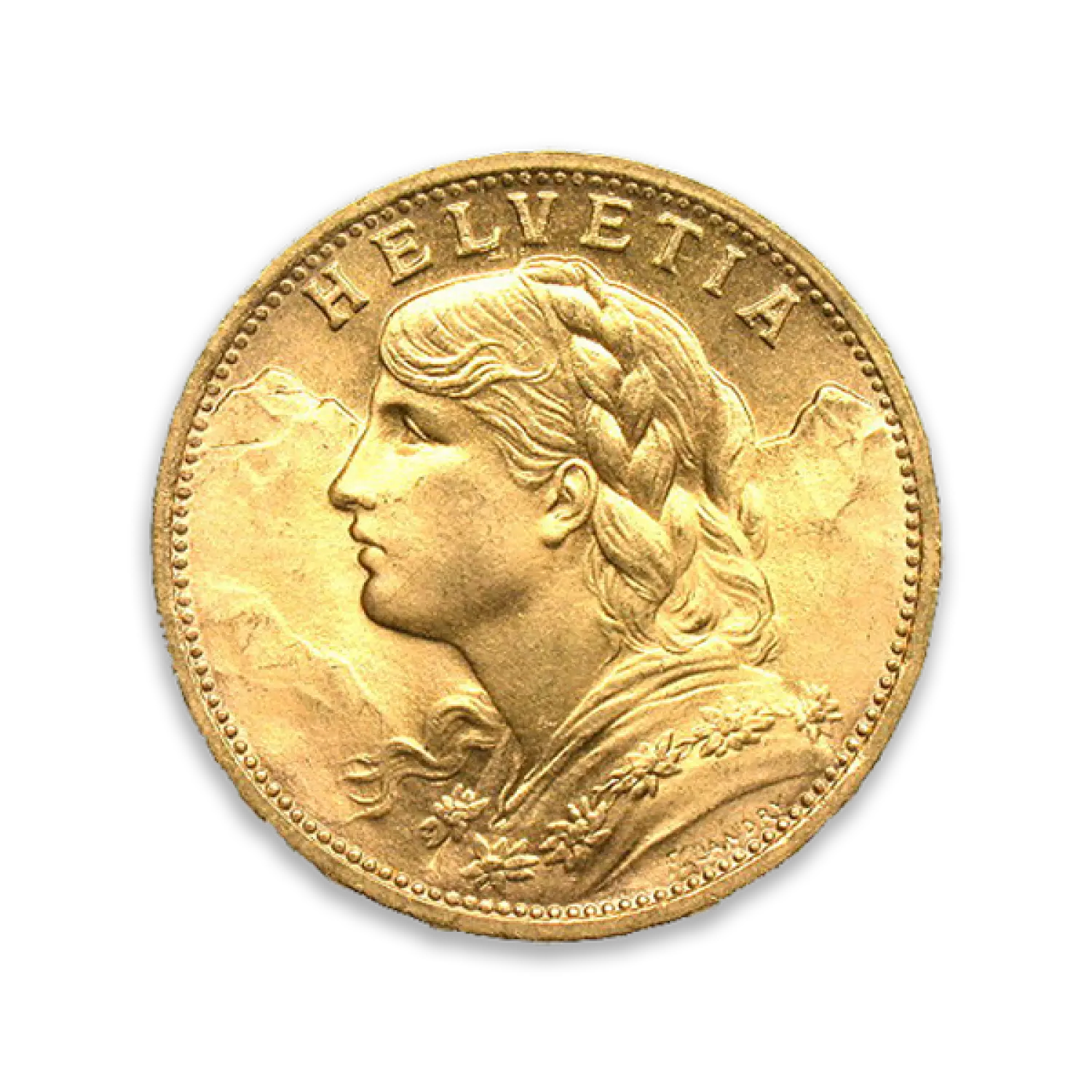 The Swiss Gold 20 Franc coin is a beautiful design. It is very commonly traded in the bullion market as these coins trade for their gold value. Made of 90% gold and 10% copper, they contain 0.1867 troy ounces of gold in each coin.