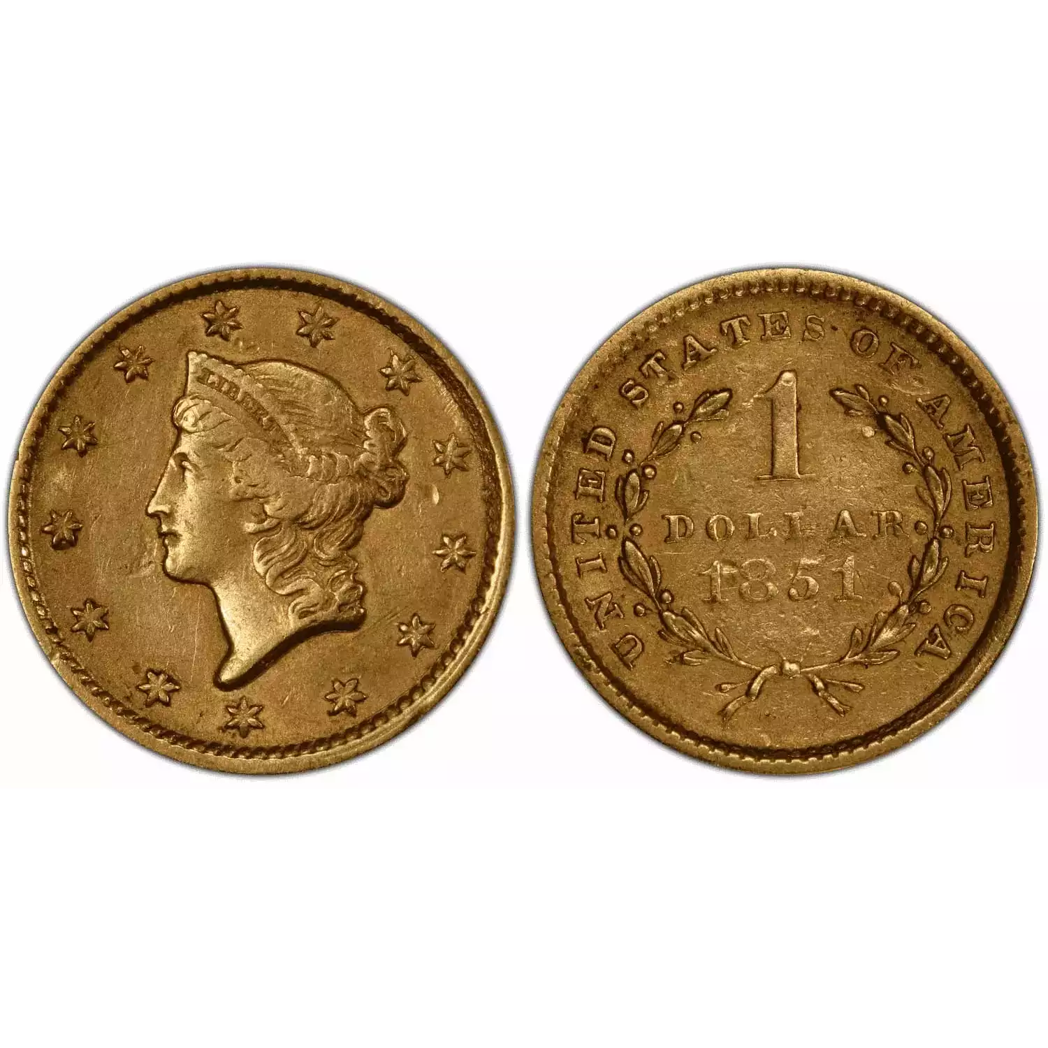 THE COIN YOU RECEIVE IS OUR CHOICE. IT WILL BE A COIN ESTIMATED TO BE OF THE GRADE / QUALITY INDICATED. THE IMAGE SHOWN IS AN EXAMPLE ONLY. Gold Dollar (1849 - 1889) - Circ