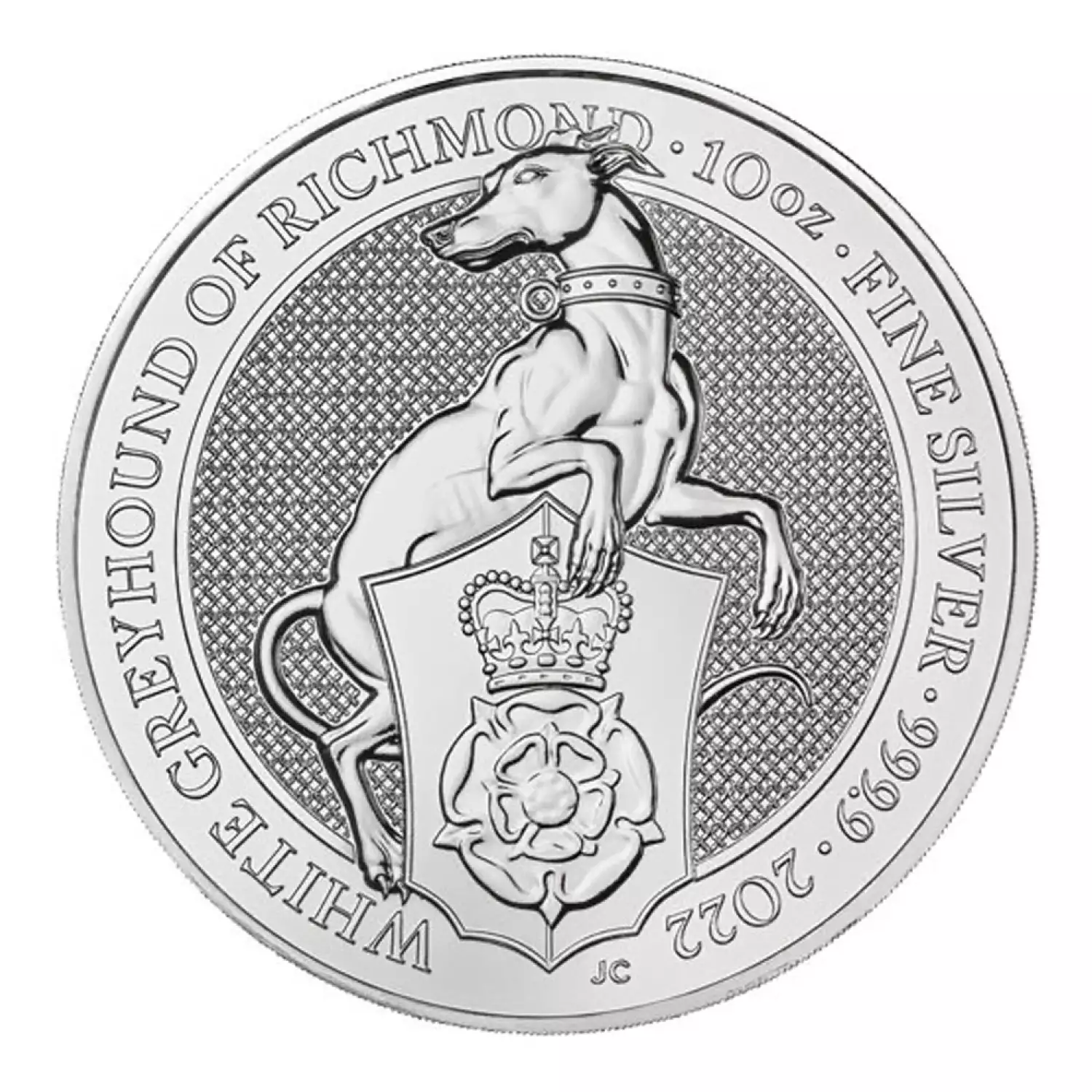 The 2022 10oz Britain Queen's Beasts: The White Greyhound is the 10th and final release in an exciting 10 coin series. The Britain Queen's Beasts celebrate the British Monarch and the centuries of fascinating heraldry. This silver coin contains 10 oz of .999 fine silver. The reverse the is facing the White Greyhound of Richmond along with the representative seal of the Tudors.