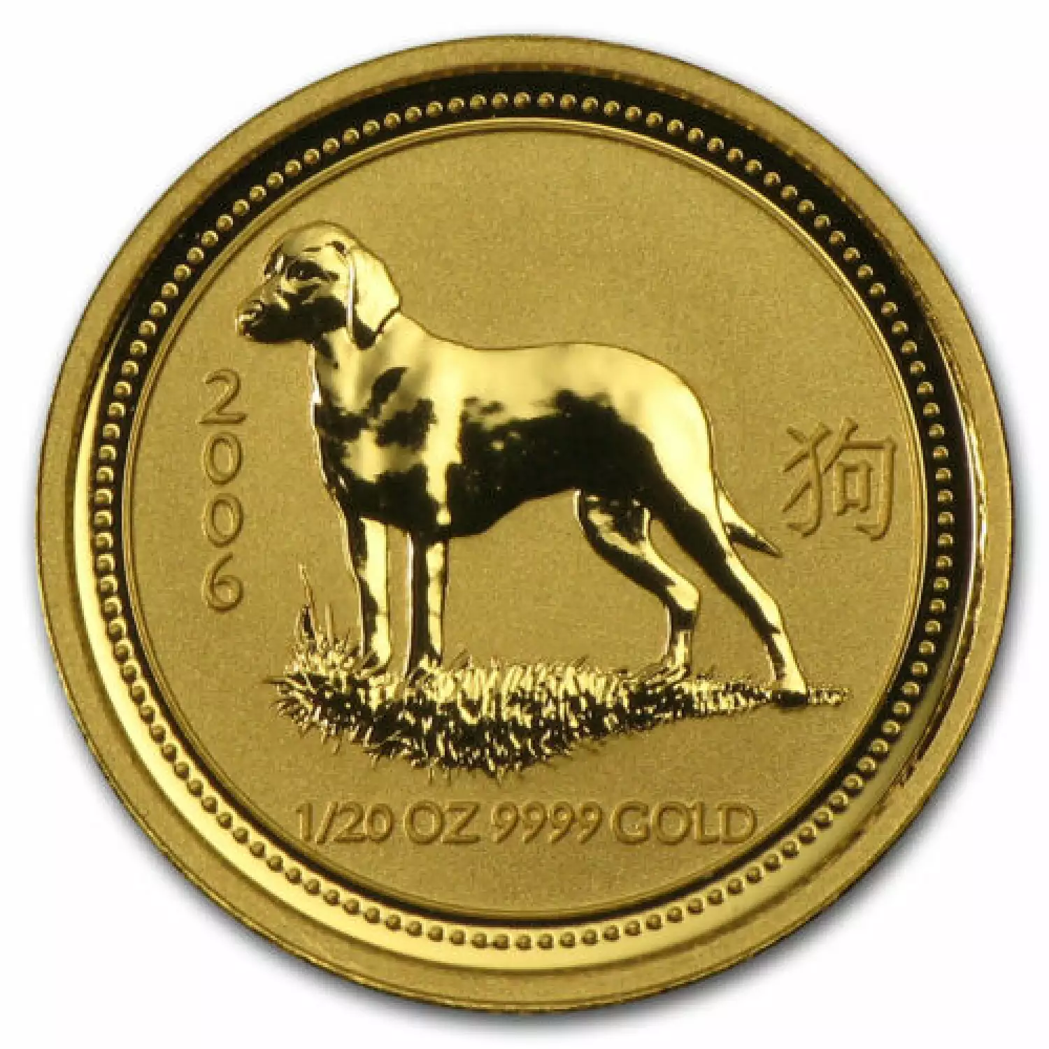 The 2006 1/20 oz Australian Perth Mint Gold Lunar: Year of the Dog is the 11th release in the Perth Mint's Series I Lunar Series.