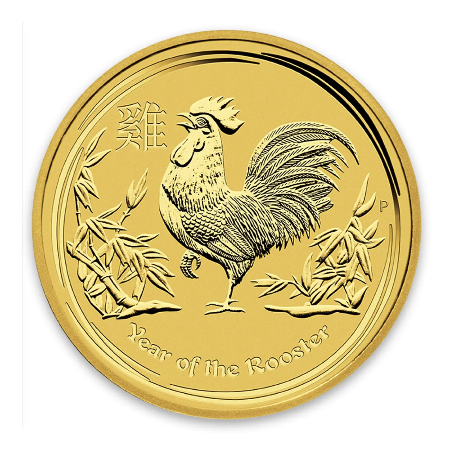 The 2017 1/20 oz Australian Perth Mint Gold Lunar II Year of the Rooster is composed of 0.05 oz of .9999 actual gold.