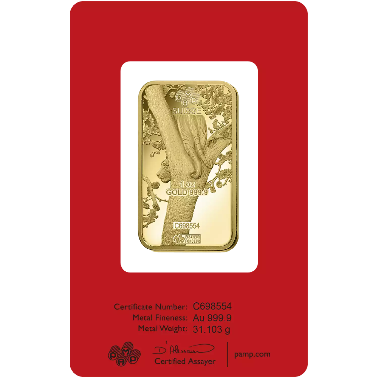 Originating in China millennia ago, each new year is celebrated based on the lunar cycle of time, unlike the Western calendar. Known in China as ‘shengxiao’ (shenz-yaw), the Chinese lunar new years follow a repeating cycle of 12 years, with each year represented by a specific animal and its special attributes. PAMP’s highly popular series of Lunar Calendar ingots in fine gold or silver celebrates the traditions of the Chinese New Year with unexpected designs that delight and captivate, from reverse-to-obverse. The brilliant red CertiPAMP™ assay packaging presents each annual ingot as the ideal new year gift for others, or to collect for the self. Available in silver and gold fractional sizes.