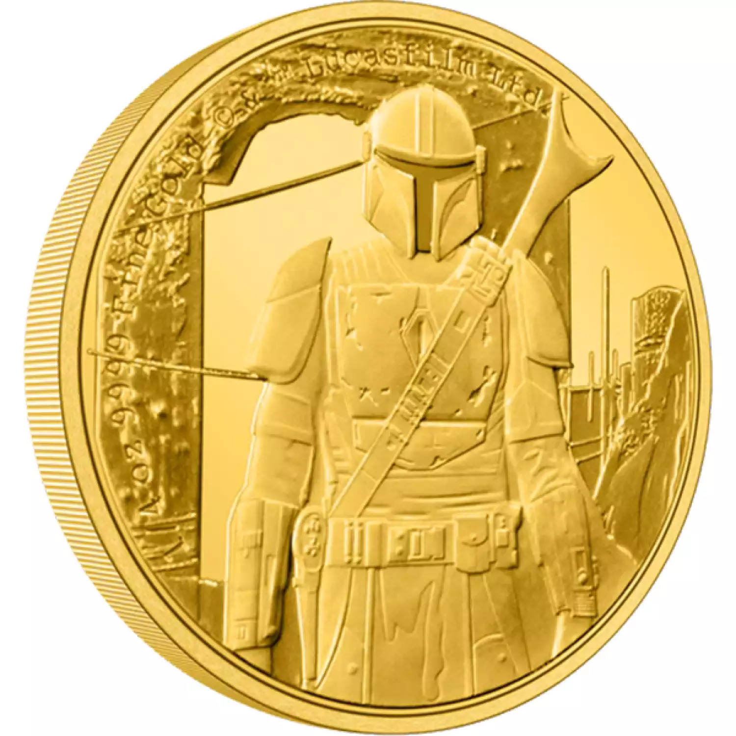 This delicately engraved 1/4oz pure gold coin features a close-up shot of The Mandalorian in full battle gear. As a legal tender coin, the obverse simply bears the Ian Rank-Broadley effigy of Her Majesty Queen Elizabeth II.