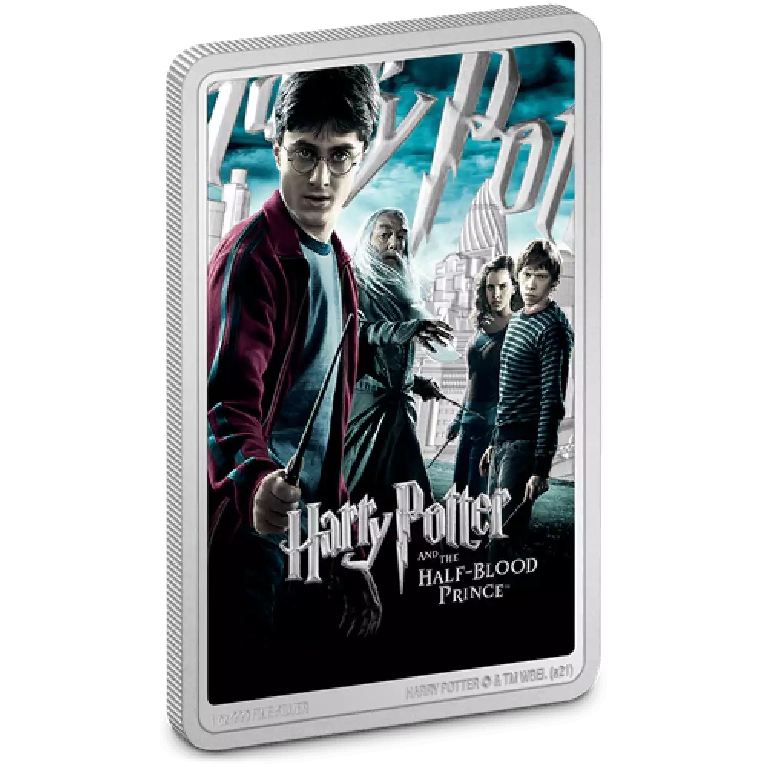 This is a unique memento for the sixth HARRY POTTER™ movie, Harry Potter and The Half-Blood Prince™. This replica movie poster coin features a combination of colour and engraving – allowing the silver to shine out from the dark and moody design. It includes heroes Harry, Ron, Hermione and, of course for this movie, Dumbledore. The Ian Rank-Broadley effigy of Her Majesty Queen Elizabeth II can be found on the obverse to confirm it as legal tender.