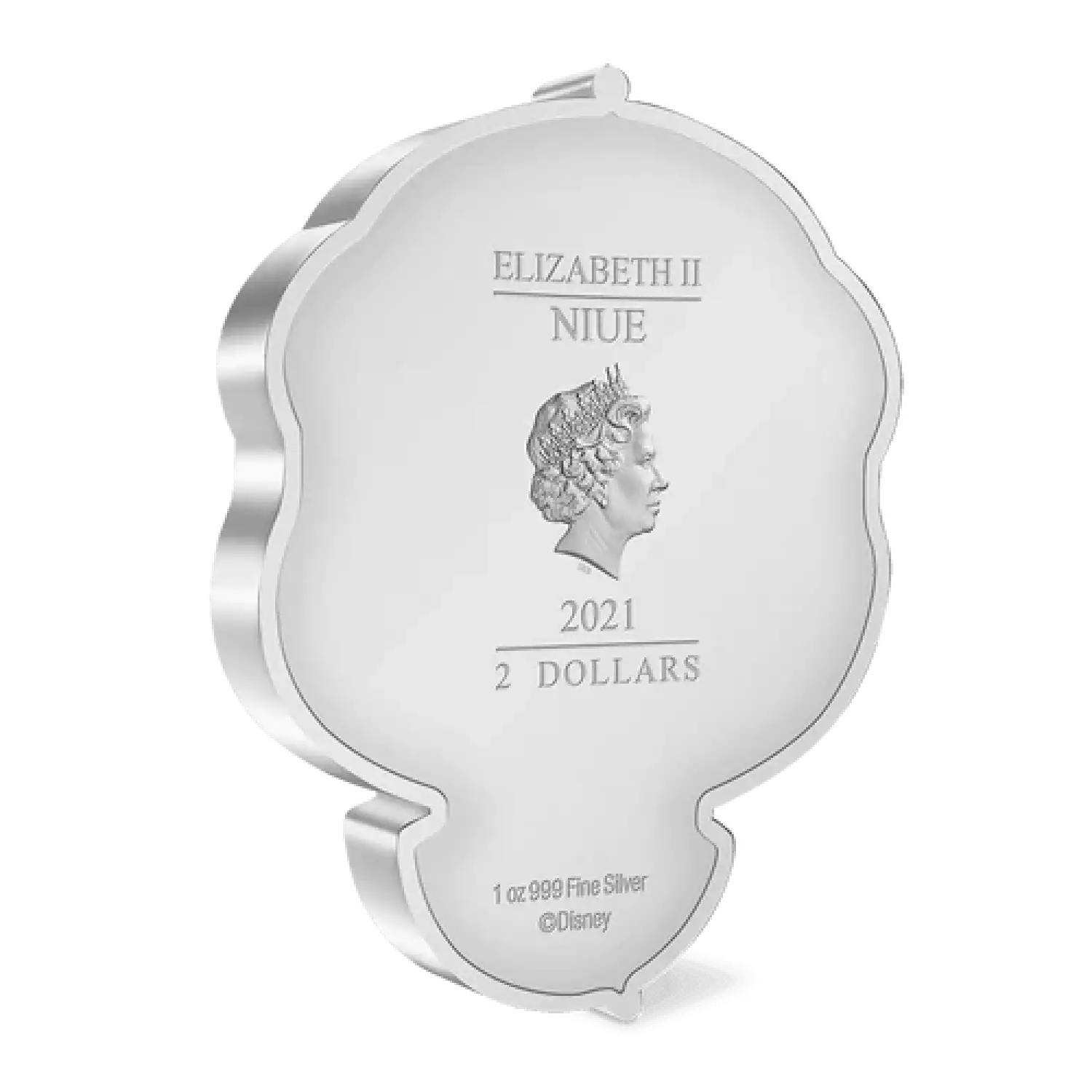 This 1oz pure silver Chibi® Coin has been shaped and coloured to represent Disney Princess Snow White. Recognisable by her red hair bow, lips as red as a rose and iconic blue and yellow dress. Despite the shape and colour of this coin, it is still legal tender, confirmed by the Ian Rank Broadley effigy of Her Majesty Queen Elizabeth II on the obverse. A specially designed coin case, moulded to the coin’s shape, offers extra protection to this limited-edition coin.