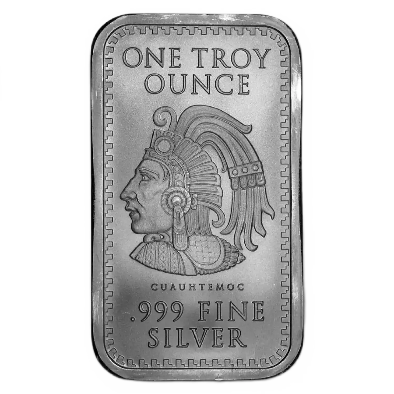 This stunning 1 oz Silver Bar features a beautiful design of the Aztec Calendar Sun Stone in spectacular detail.