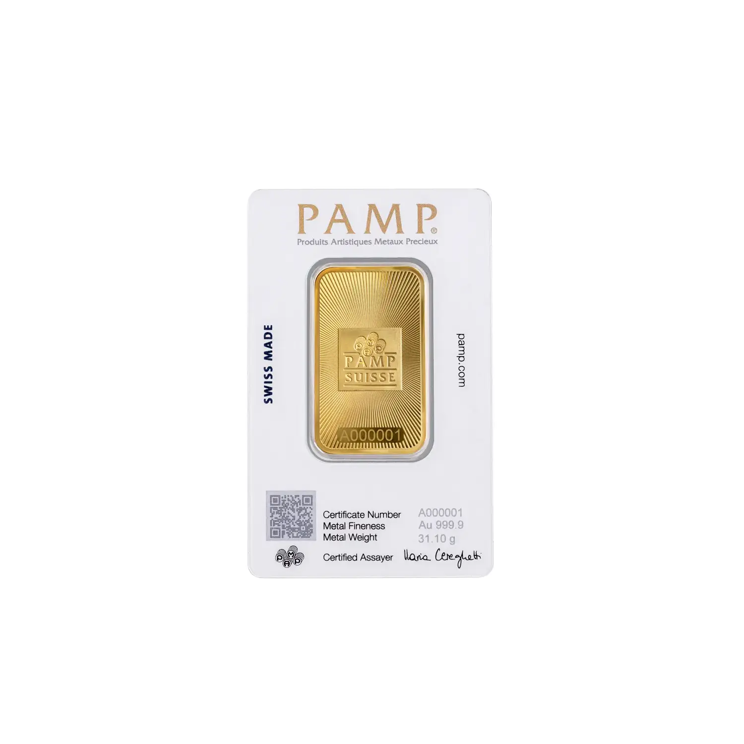 The PAMP Suisse 9999 Pure 1oz Gold Bar is a meticulously crafted and highly sought-after gold bullion product. Produced by the prestigious PAMP Suisse, a renowned Swiss precious metals refinery, this gold bar exudes exceptional quality, purity, and craftsmanship. PAMP Suisse is globally recognized for its commitment to excellence, making their gold bars highly trusted and valued by investors and collectors alike.