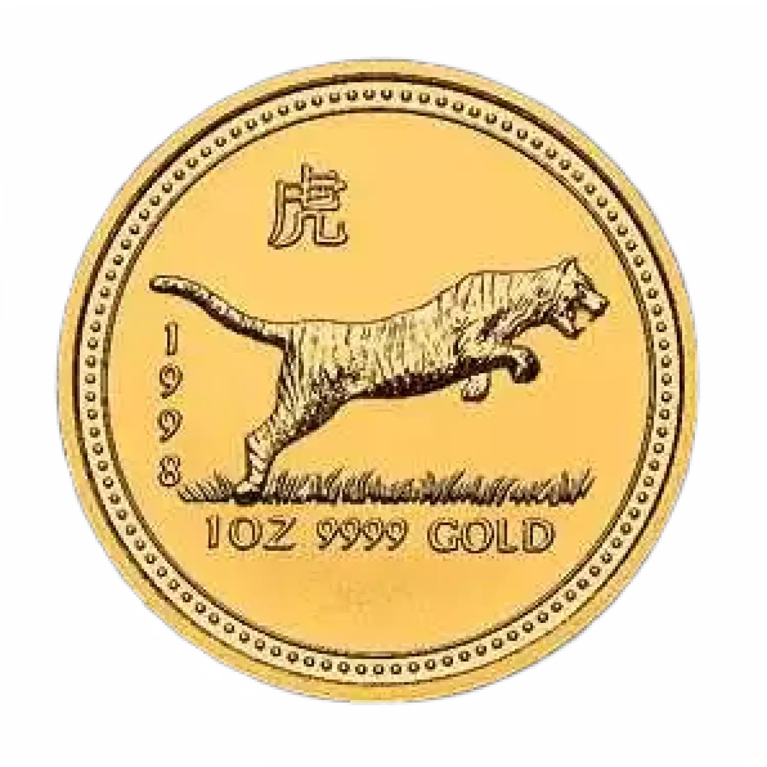 The 1998 1 oz Australian Perth Mint Gold Lunar: Year of the Tiger is the third release of the Australian Lunar Series and has a limited mintage of just 16,907 coins. This gold bullion coin has a face value of 100 AUD.