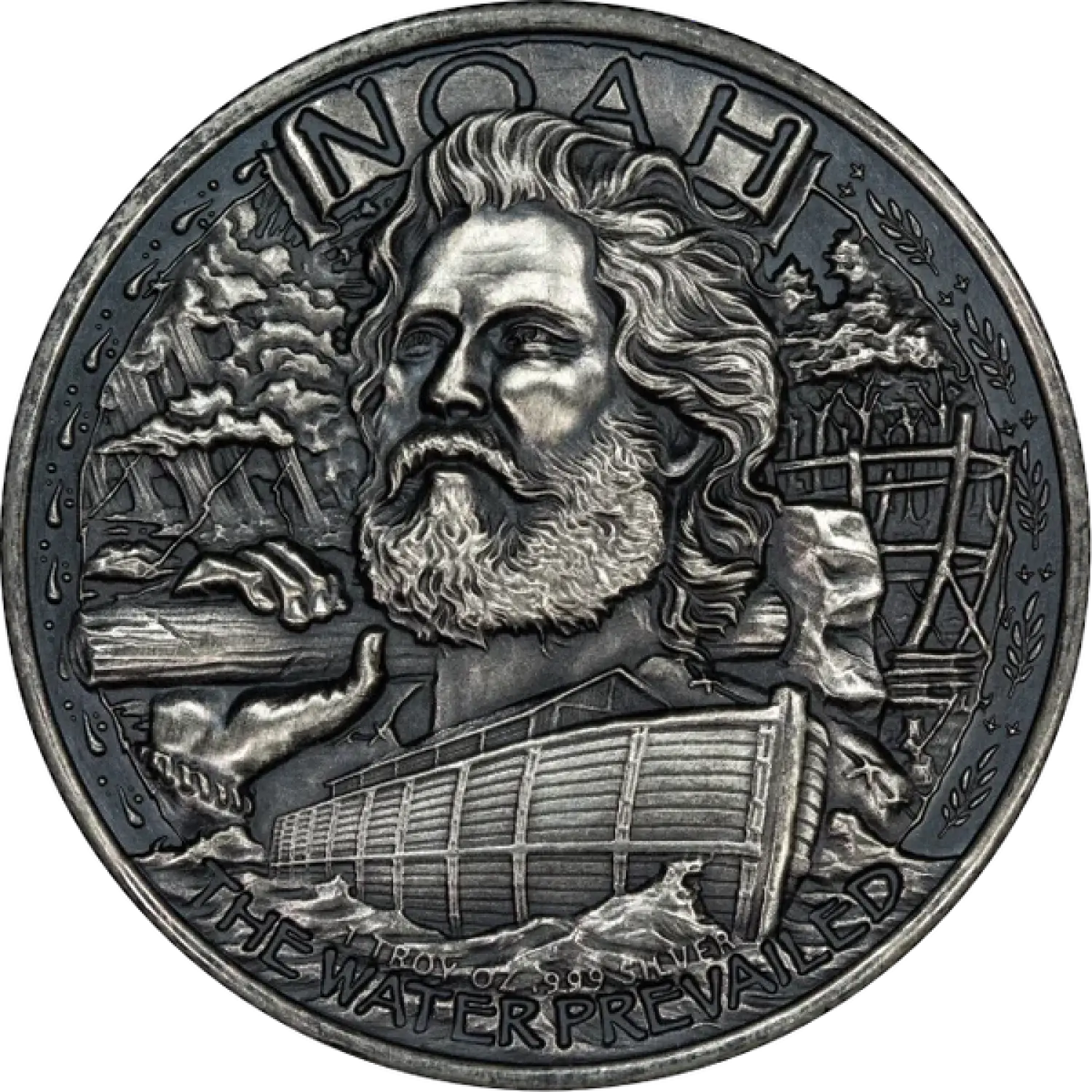 Adorned with an intricately detailed depiction of Noah's Ark, the reverse side of the round showcases the majestic vessel floating on the floodwaters, surrounded by the animals it carried. This beautiful design serves as a reminder of hope and renewal, making it a meaningful piece to own. The obverse features the weight, purity, and the issuing authority, providing assurance of its quality and authenticity. This combination of stunning artistry and precious metal ensures that the 1 oz Silver Round - Noah's Ark (Antique) will be cherished for generations.