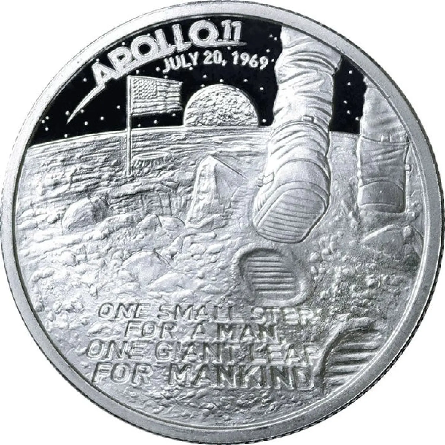 Discover the extraordinary allure of the 1 oz Apollo Moon Landing Silver Round, a stunning tribute to one of humanity's most monumental achievements in space exploration. This beautifully crafted silver round commemorates the iconic moon landing in 1969, where astronauts Neil Armstrong and Buzz Aldrin made history as they took their historic steps on the lunar surface. With its intricate design and fine silver content, this round is not just a collector's item; it is also an exceptional investment piece that embodies the spirit of exploration, innovation, and achievement.