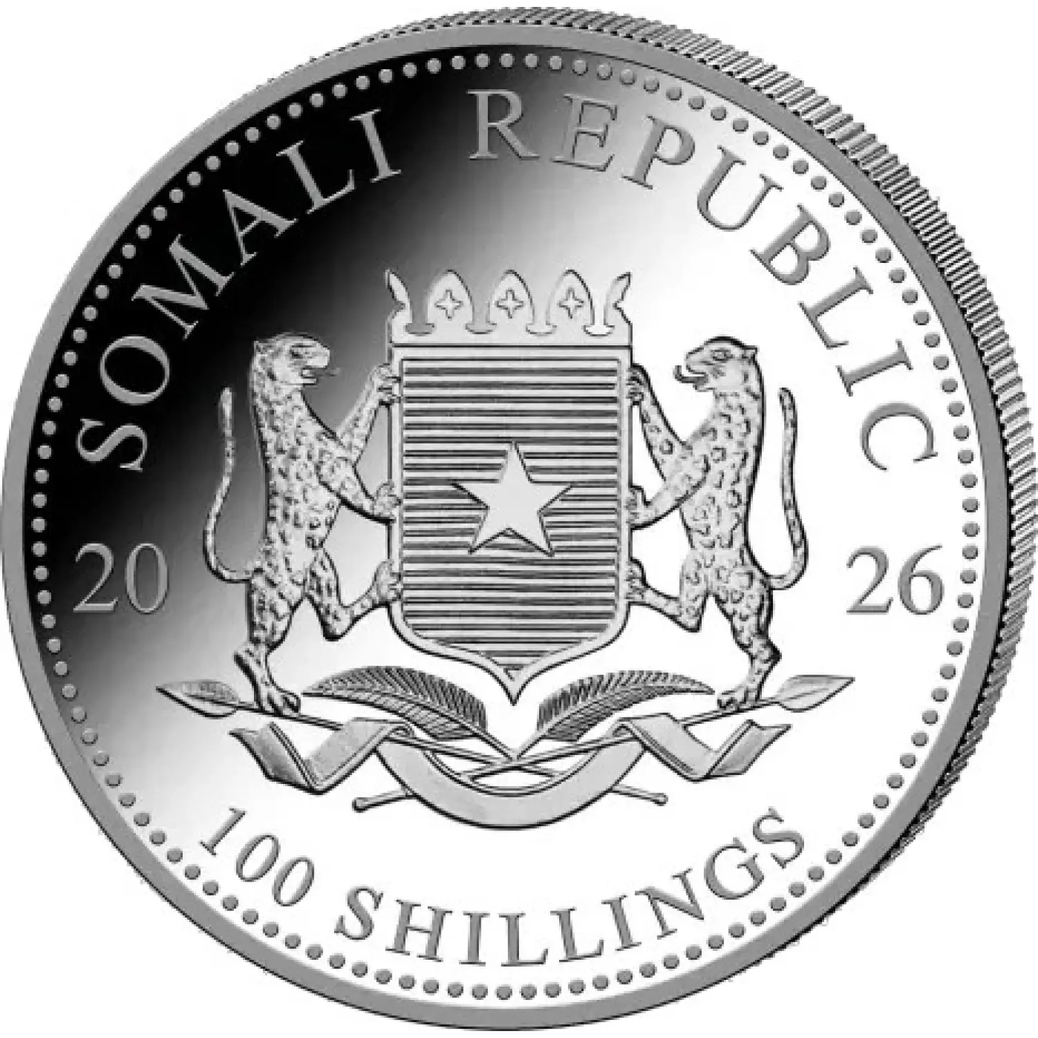 First released in 1999, the Silver Elephant series has gained a reputation for its iconic and intricate designs, making it a favorite among collectors and investors alike. The 2026 edition continues this tradition with a design that features a proud African elephant on the reverse, emphasizing its immense stature and grace. The obverse showcases the coat of arms of Somalia, lending an aura of authenticity and significance to the coin.