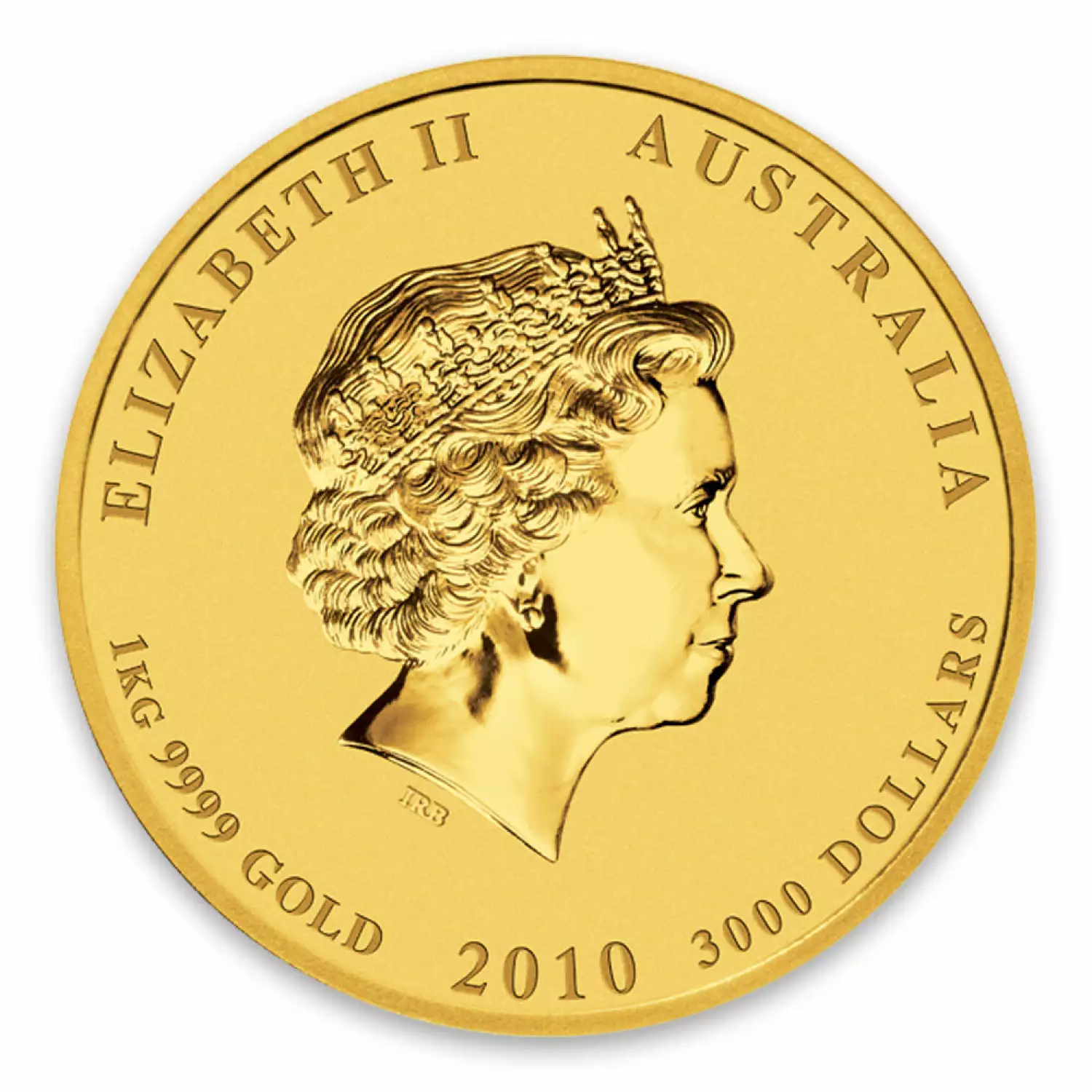 The 2010 1kg Australian Perth Mint Gold Lunar II: Year of the Tiger is guaranteed by the Federal Government of Australia and has a limited mintage of just 110 coins. The Obverse of the coin features the Ian Rank-Broadley likeness of Her Majesty Queen Elizabeth II. The Reverse displays a tiger’s head and the Chinese character for "tiger" with the Perth Mint’s traditional “P” mintmark.