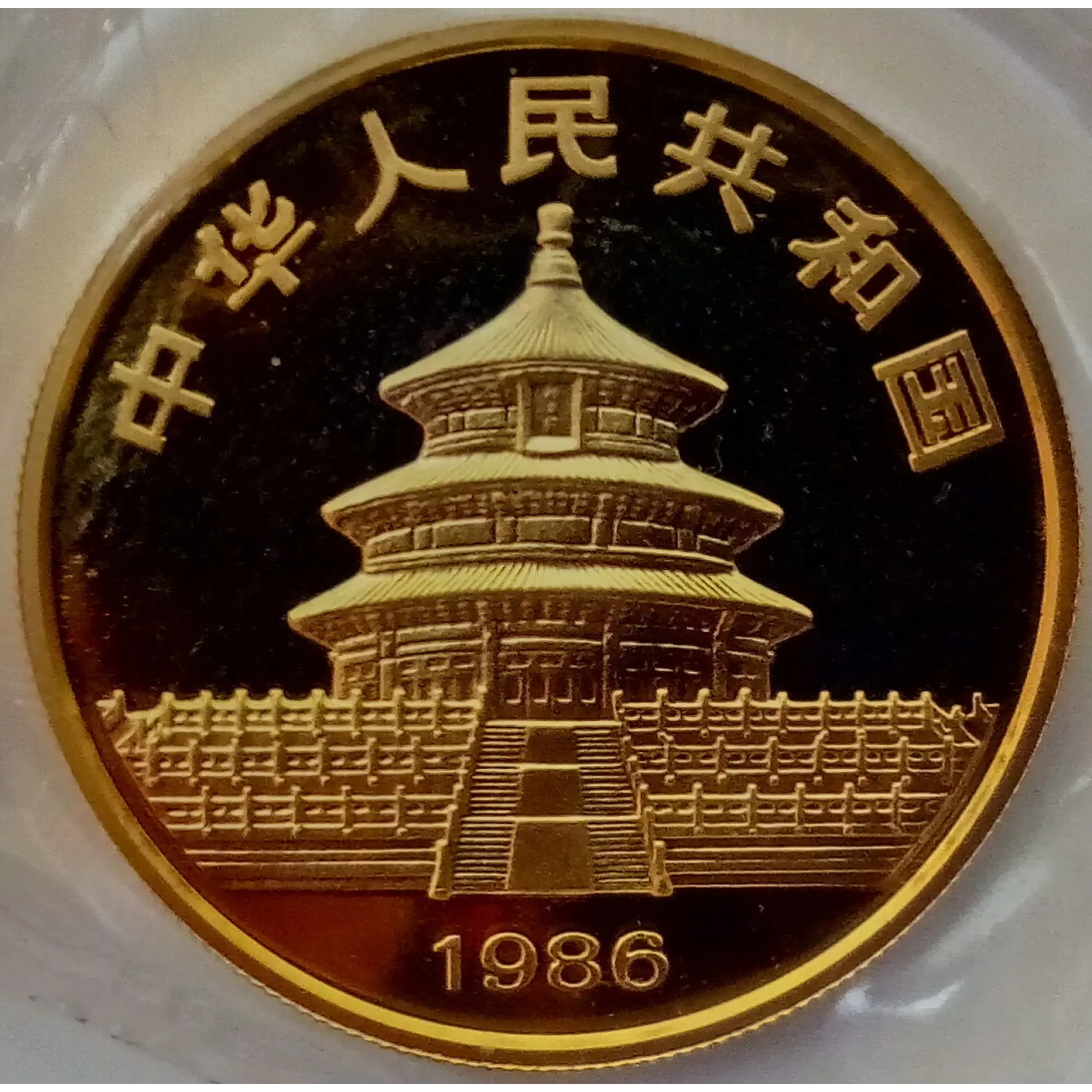 The 1986 Chinese Panda Gold coin is minted as .999 fine gold, 24 karat.
