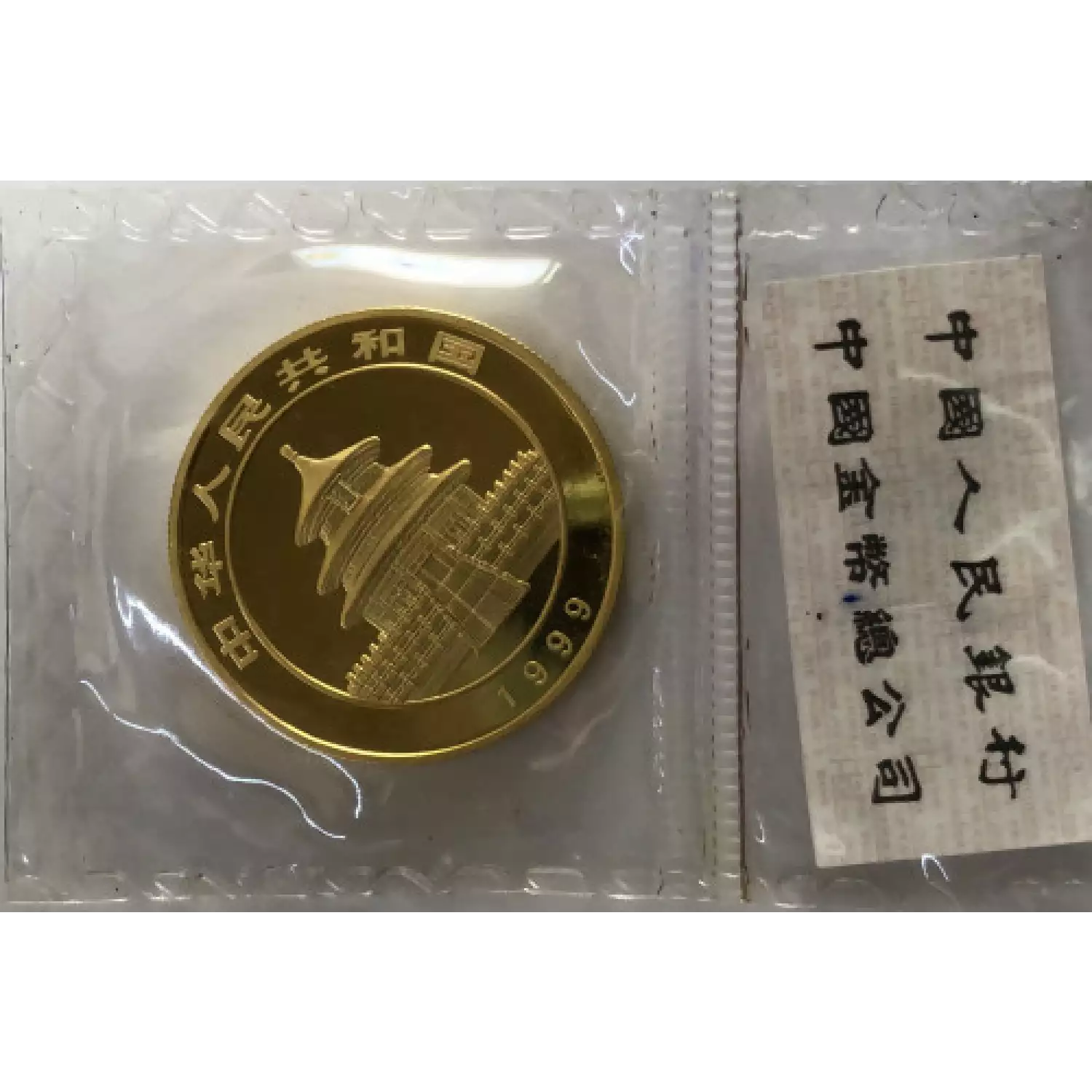The 1999 Chinese Gold Panda coin is minted as .999 fine gold, 24 karat.