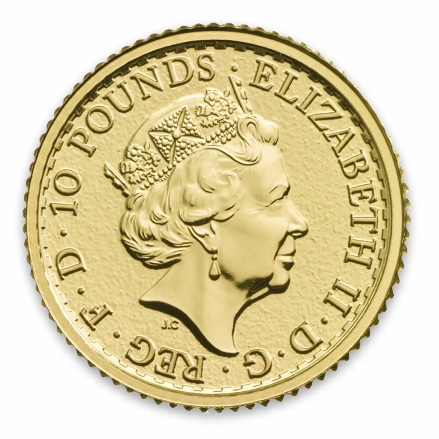 The British Gold Britannia continues to provide beauty and reliability. The 1/10 oz British Gold Britannia is one of the most popular investment coins in the world. This stunning gold coin contains 0.1 troy ounce of .9999 fine gold.