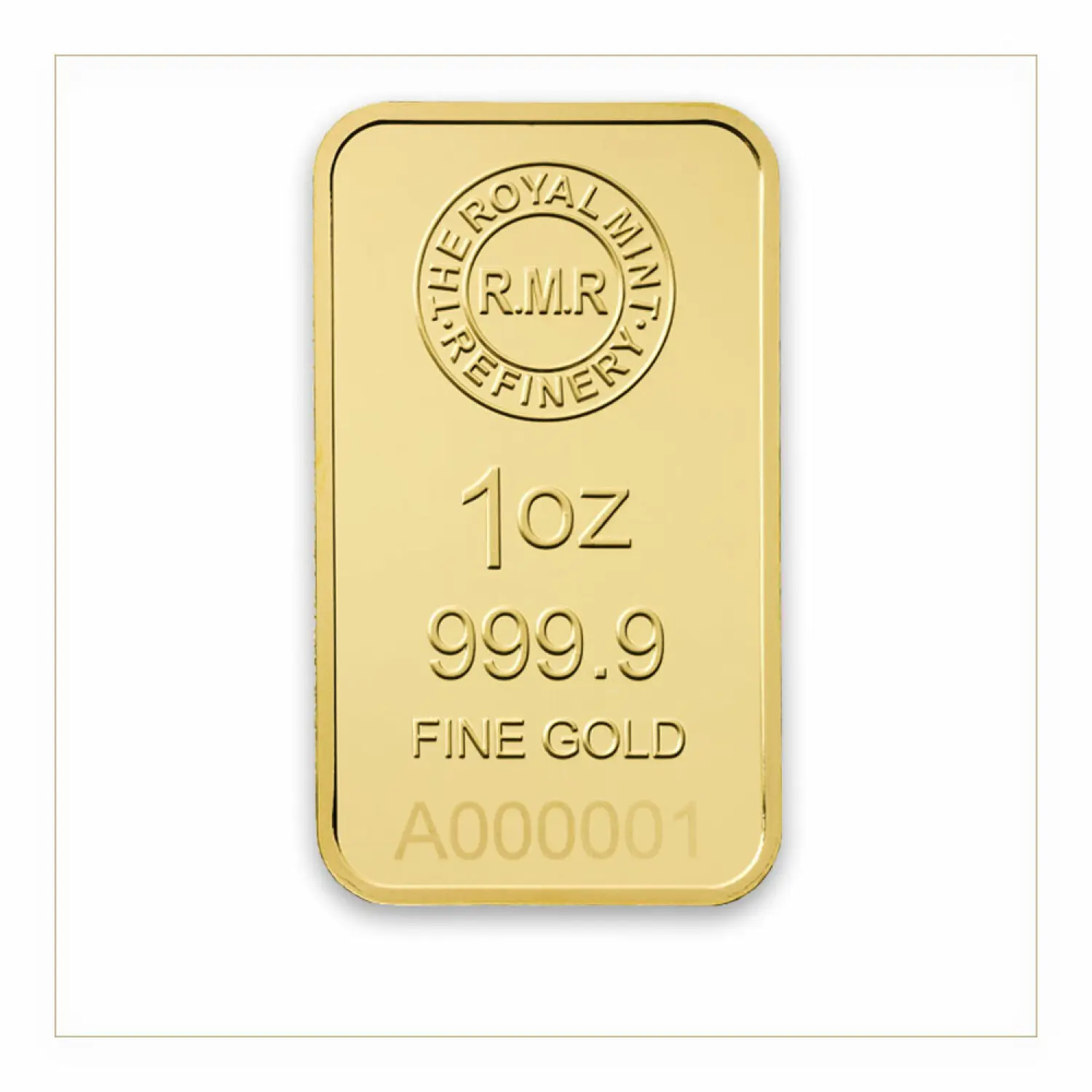 The 1 oz Royal Mint Refinery Minted Gold Bar contains 1 troy ounce of .9999 gold, ideal for those looking to build an easily divisible portfolio.