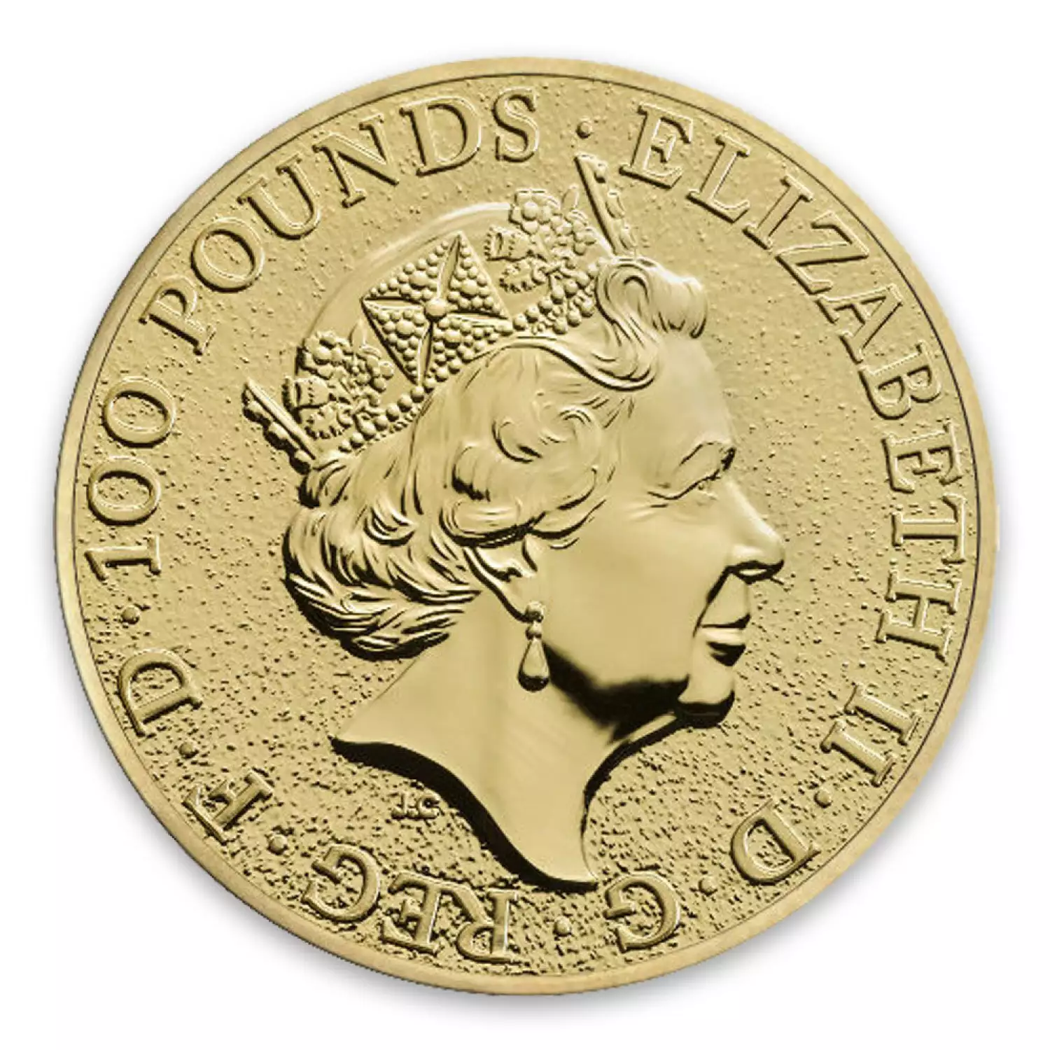 The Britain Queen's Beasts celebrate the British Monarch and the centuries of fascinating heraldry. This strikingly beautiful gold coin contains 1 oz of .9999 fine gold.